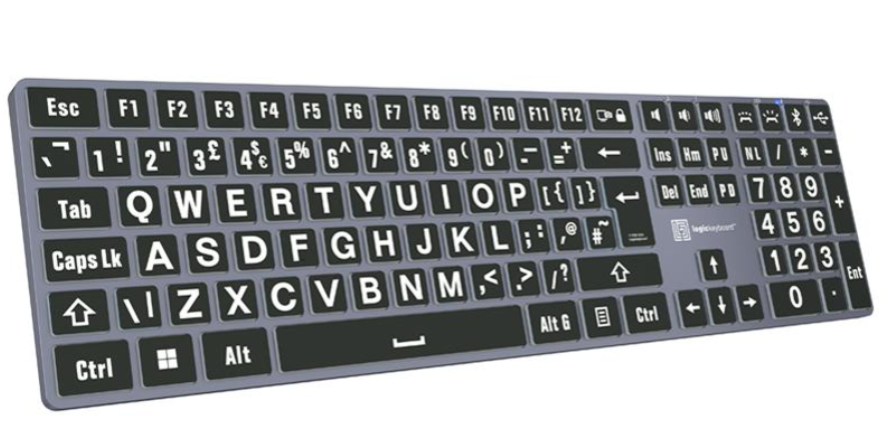 Klávesnica LogicKeyboard XLPrint Bluetooth White on Black pre PC je klávesnica s