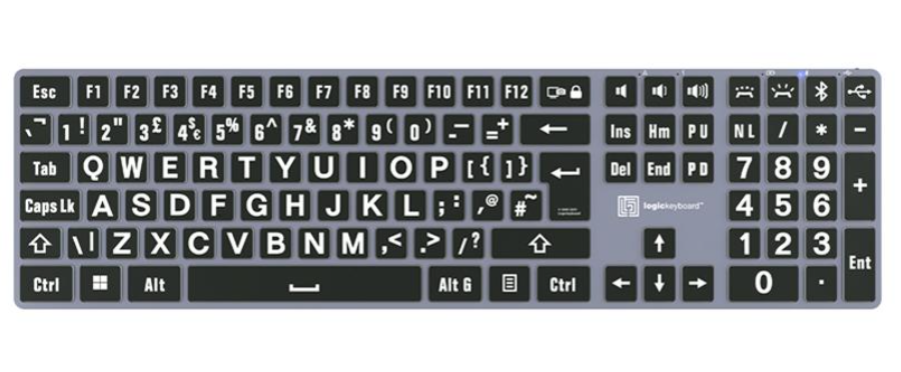 Pomocná klávesnica Logickeyboard Braille/LargePrint Black on White pre PC je bezbariérová