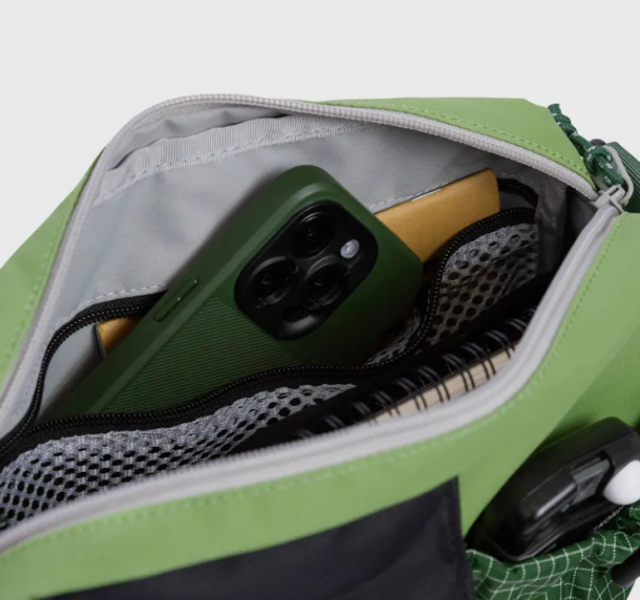 Táto taška cez rameno, inšpirovaná dlhými cestami a natáčaním filmu, je taškou, ktorú sme vždy chceli vyrobiť. Vďaka dokonalej kombinácii veľkosti a organizácie je navrhnutá tak, aby ste v nej mohli nosiť všetko, čo potrebujete, a nič, čo nepotrebujete. Robustný 500d recyklovaný nylon a technická sieťovina sú odolné voči poveternostným vplyvom a vydržia v akýchkoľvek podmienkach. Vždy po vašom boku, zips, cargo a strečové vrecká umožňujú rýchly prístup k vašim drobnostiam. A nastaviteľný popruh vám umožní vybrať si dokonalé prispôsobenie na nosenie cez rameno alebo krížom cez rameno. Táto brašňa je určená pre všetkých roadtripperov. Dúfame, že budete mať dlhý víkend.
