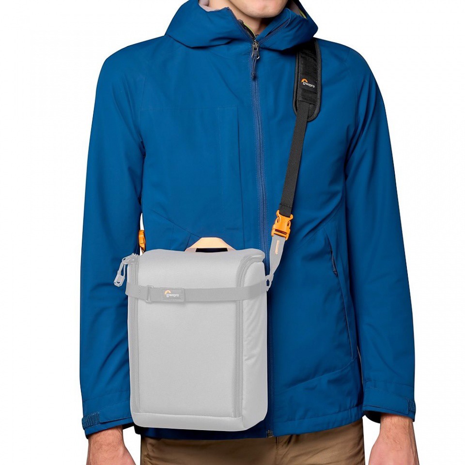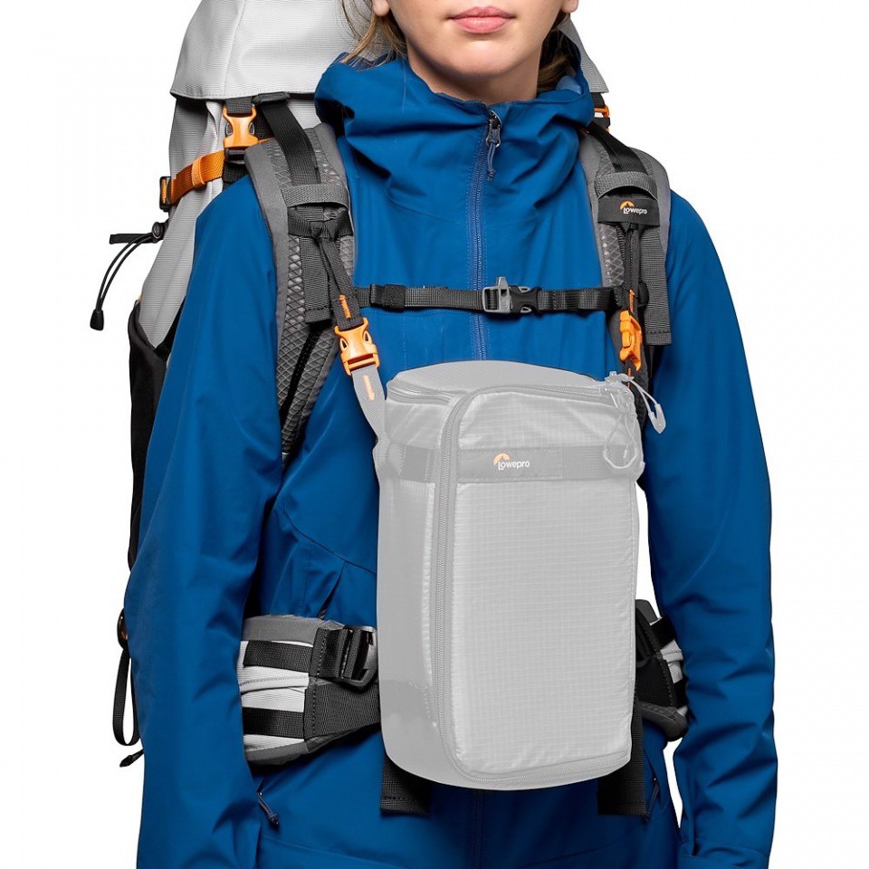 Pár montážnych konektorov vám potom umožňuje pripevniť fotoaparát alebo box GearUp priamo k ramennému popruhu batohu Lowepro.