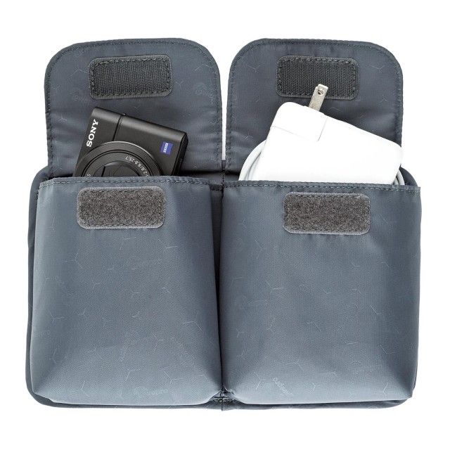 Puzdro má 13 kompresných slučiek, z ktorých 9 sa nachádza na obojstrannom odnímateľnom paneli, čo umožňuje flexibilné a bezpečné upevnenie príslušenstva.