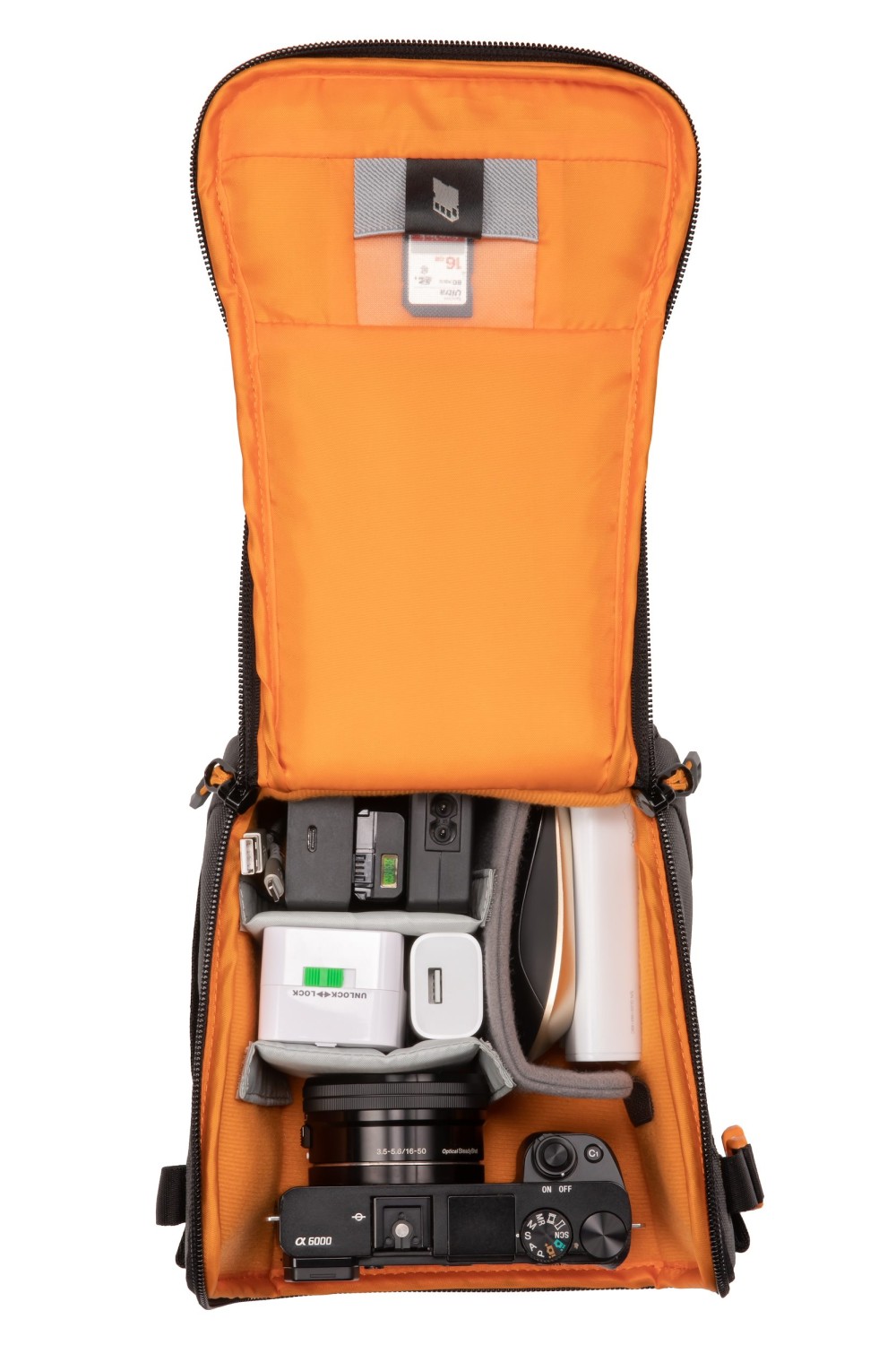 Vďaka nastaviteľným vnútorným priehradkám si môžete prispôsobiť usporiadanie tak, aby všetko pohodlne a bezpečne sedelo, zatiaľ čo systém QuickDoor zaisťuje rýchly a pohodlný prístup k vašej výbave. Dvojitý 360° zips umožňuje ľahké vkladanie a plný prístup k obsahu a zapínací popruh udržuje všetko bezpečne na mieste. Vnútorné a vonkajšie vrecká ponúkajú prehľadné uloženie pamäťových kariet, káblov, krytiek objektívov, batérií a osobných predmetov.