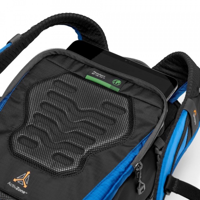 Batoh je navrhnutý na prenášanie bezzrkadlového fotoaparátu s crop senzorom, ako je Sony A6500 s nasadeným objektívom 16–55 mm, plus 1–2 ďalšie objektívy, a obsahuje integrovanú, odnímateľnú vložku GearUp na fotoaparát pre individuálnu ochranu. Jeho systém popruhov ActivZone™ poskytuje cielené pohodlie vďaka polstrovanému bedrovému pásu a nastaviteľným kontúrovaným ramenným popruhom pre rovnomerné rozloženie hmotnosti.