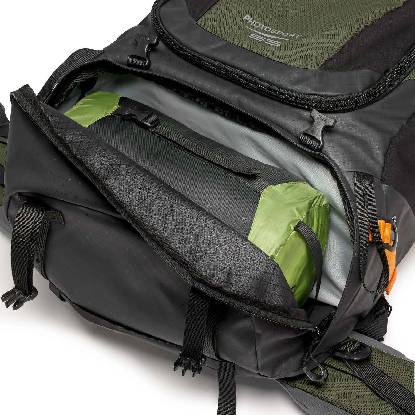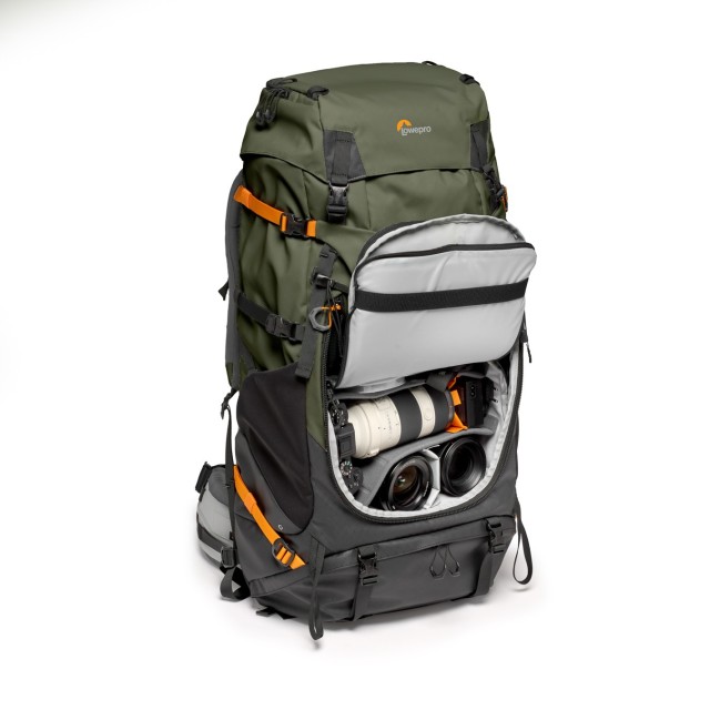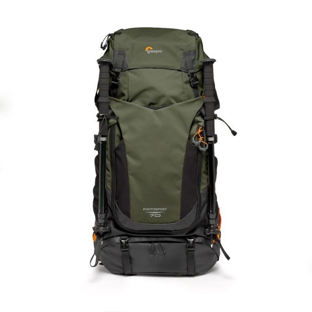 Lowepro PhotoSport PRO 70L AW IV je profesionálny batoh na fotoaparát určený na viacdňové fotografovanie v prírode. Je ľahký a vyrobený z 86 % z recyklovanej tkaniny. Pojme fotoaparát typu CSC/DSLR s nasadeným objektívom 70–200 mm f/2,8, 1–2 náhradné objektívy a ponúka priestor pre odnímateľnú vložku GearUp PRO XL, hydratačný systém a základné outdoorové príslušenstvo.