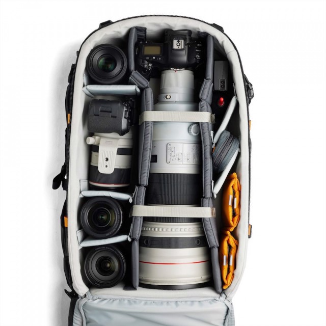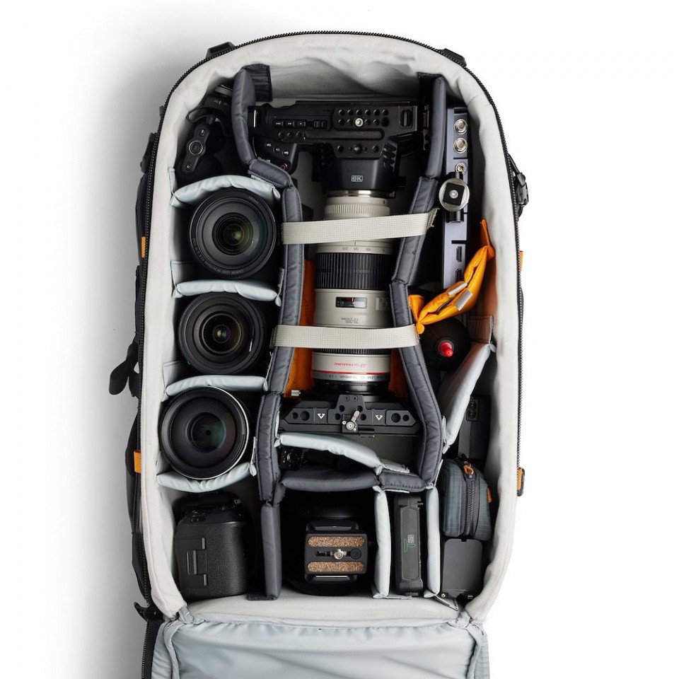 Hlavný priestor na fotoaparát je prístupný zo zadnej strany a je navrhnutý tak, aby poskytoval maximálny priestor a flexibilitu usporiadania. Pojme objektív 800 mm f/5,6 na DSLR s portrétnym držadlom alebo objektív CN20 na tele RED pre filmárov prírody, ako aj profesionálne vybavenie pre drony.