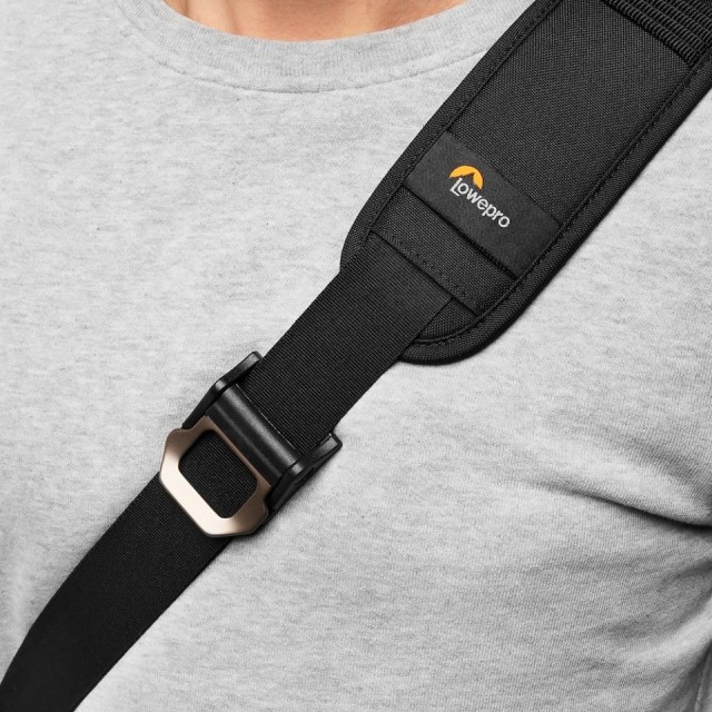 K dispozícii je upevňovací bod pre kompaktný statív a modulárne možnosti externého pripevnenia. Popruhy sa dajú ľahko nastaviť: vysoko na ramenách pre rýchlejší pohyb, s krížovým popruhom na hrudi pre pohodlie a stabilitu, alebo nízko na bokoch pre ľahkú výmenu objektívov.
