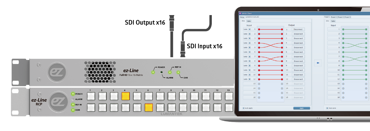 ez-Line Router VM16 je 16 x 16 router s podporou SD/HD/3G SDI signálov. VM16 dokáže posielať ostré a čisté signály, môže byť rozdeľovačom a selektorom.