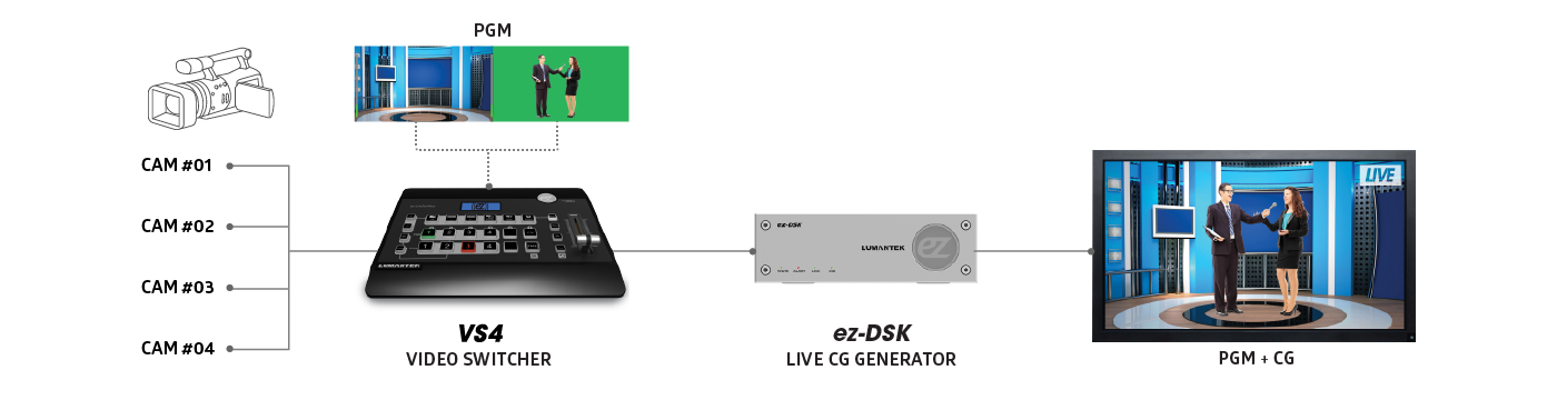 ez-DSK umožňuje jednoduchú aplikáciu titulkov, obrázkov, sekvencií, videí a widgetov na váš video program.