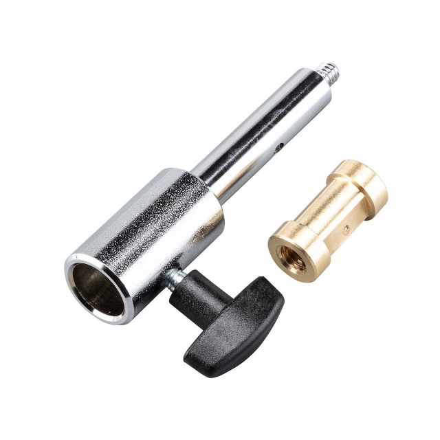 Manfrotto 016 je odolný oceľový 16 mm (5/8″ Baby) adaptér s 3/8″-16 zárezom, špeciálne navrhnutý na upevnenie bleskových hláv Broncolor alebo akéhokoľvek iného osvetlenia s 16 mm zárezom na štandardné 3/8″ čapy (Super Clamp, Magic Arm, hlavy statívov, ramená C-standov atď.). S hmotnosťou 140 g a dĺžkou 57 mm je to klasický adaptér, ktorý nájdete v každej profesionálnej osvetľovacej súprave.