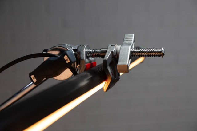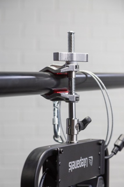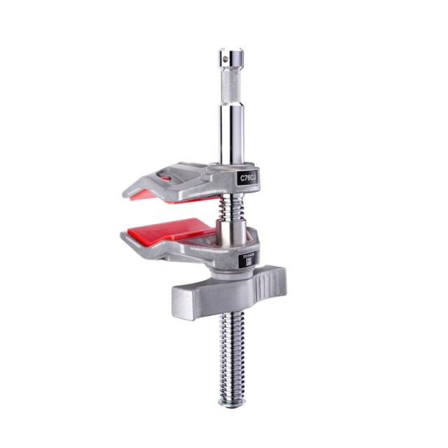 Robustná čeľusťová svorka s kapacitou otvorenia 7,5 cm a maximálnym zaťažením 80 kg.