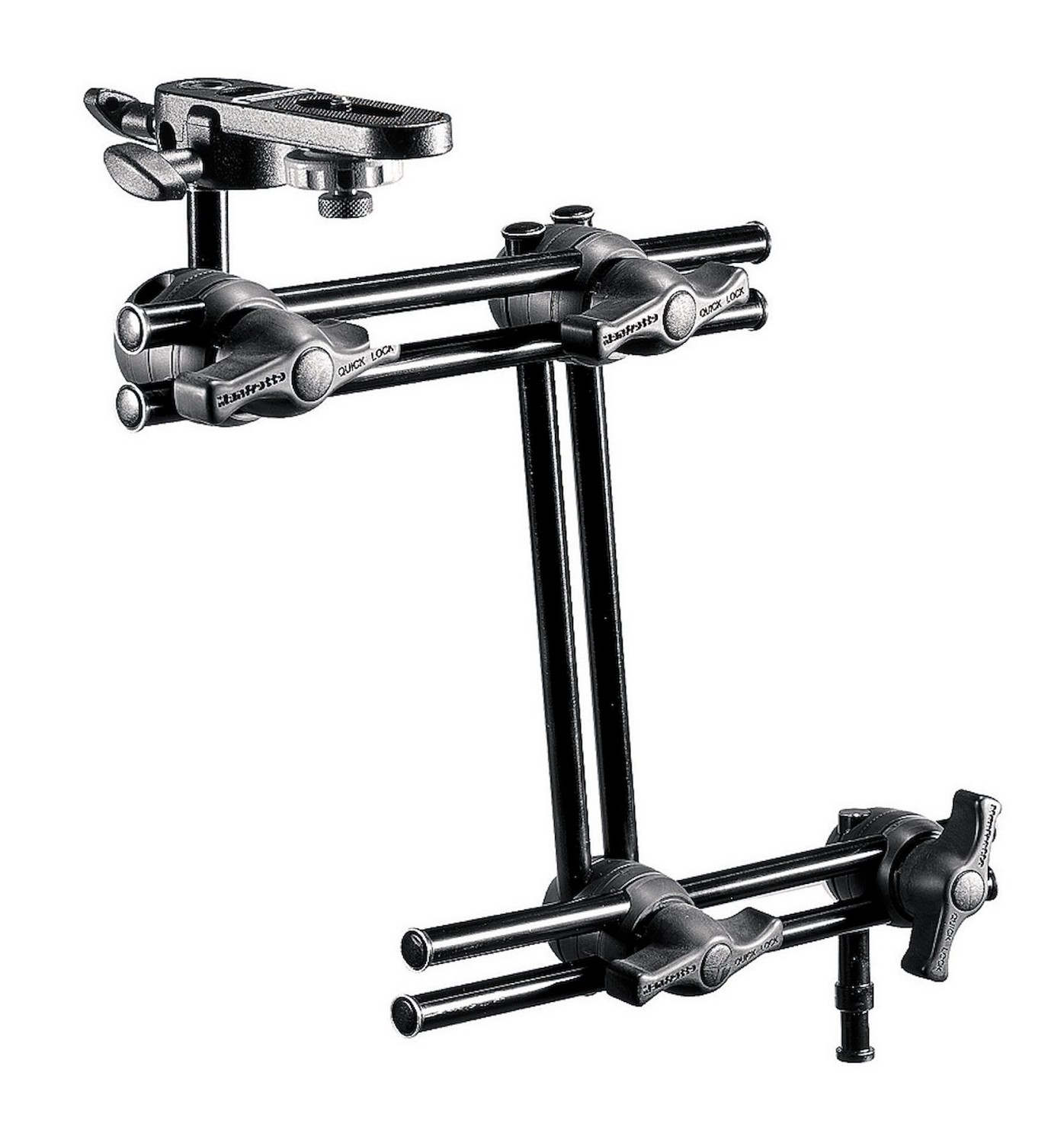 Systém rýchleho uzamknutia zabezpečuje rýchle a bezpečné nastavenie, zatiaľ čo vystužené spodné upevnenie zvyšuje stabilitu a kompatibilitu. Spodný čap kombinuje šesťhrannú protiskrutkovú časť, ideálnu na použitie so systémami Super Clamp, s univerzálnym adaptérom pre stojany, svorky a príslušenstvo. Model 396B-3 je dodávaný s držiakom fotoaparátu na hornom upevnení a je ideálny na upevnenie fotoaparátov, svetiel, monitorov a iného vybavenia v štúdiu alebo v teréne.