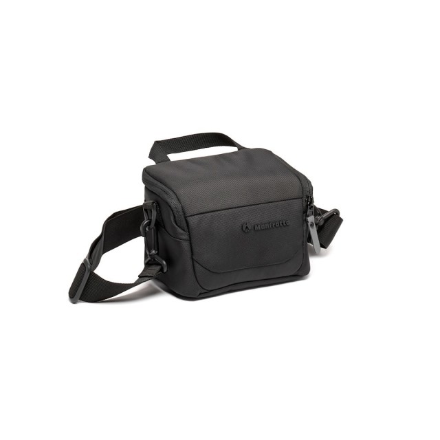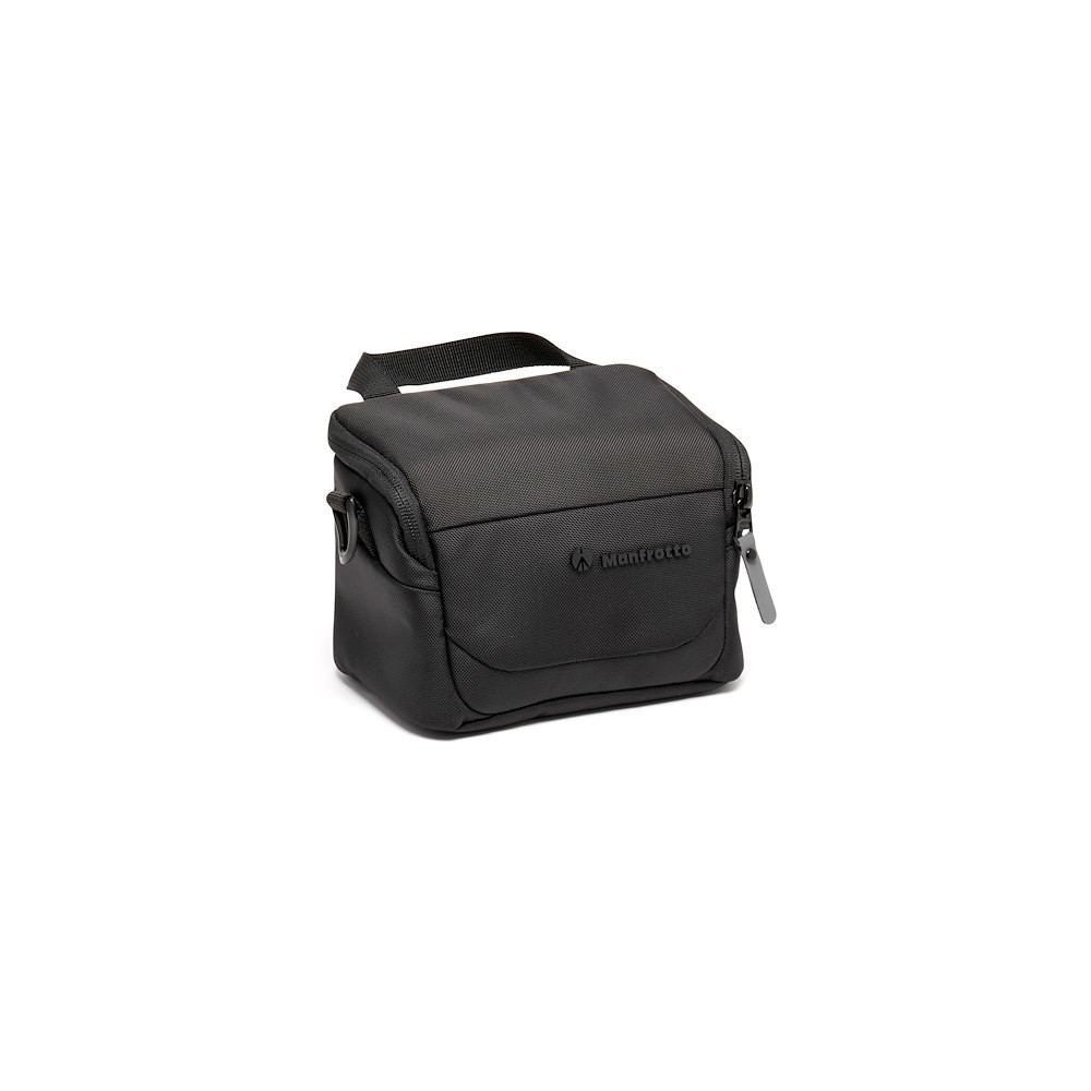 Manfrotto MB MA3-SB-XS Advanced Shoulder Bag XS III je 2-litrová, 210 g vážiaca čierna vodoodpudivá taška navrhnutá pre bezzrkadlové CSC fotoaparáty, do ktorej sa zmestí fotoaparát s objektívom zo sady a jeden ďalší objektív v plne polstrovanom priestore s rozmermi 16 × 11 × 12,5 cm s prispôsobiteľnými priehradkami, zipsom s plnou klopou, odnímateľným popruhom a priloženým krytom proti dažďu.