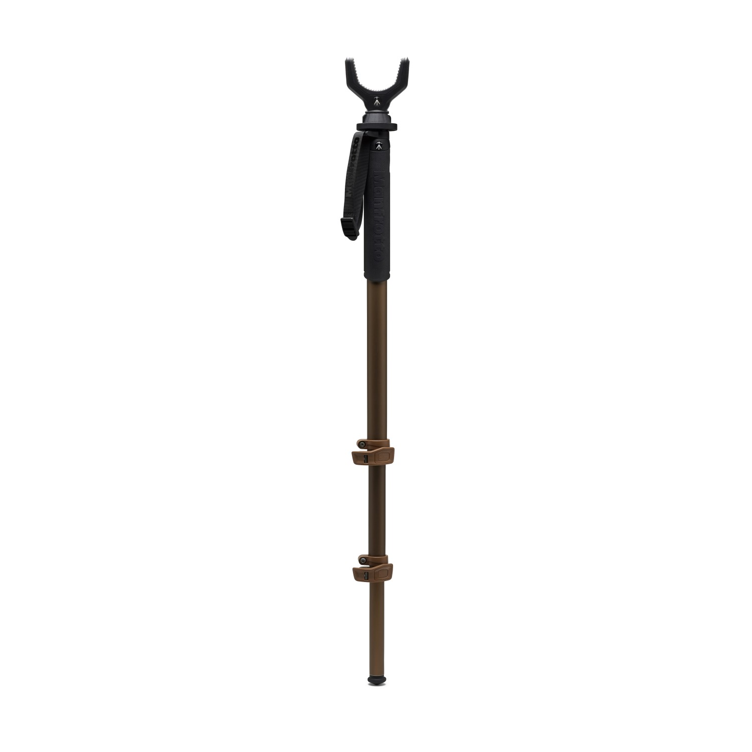 Postavený na osvedčenej platforme monopodu XPRO od Manfrotto, ALPHA S.H.O.T. nahrádza štandardný remienok na zápästie a pätku veľkým ergonomickým V-jarmom a predĺženým gumovým návlekom na nohu, čím poskytuje poľovníkom stabilnú a tichú oporu pre pušky alebo brokovnice v akomkoľvek smere bez zmeny úchopu. Tri hliníkové časti sa okamžite zafixujú pomocou pák Quick Power Lock od spoločnosti Manfrotto, polstrovaný návlek na nohu zaisťuje pevné uchopenie aj v rukaviciach alebo v chladnom počasí a na spodnej časti je možné pripevniť hroty Manfrotto (predávajú sa samostatne) pre mäkký povrch. Ideálny pre lov z úkrytu, lov zo stanoviska alebo hony, kde je dôležitá rýchlosť a stabilita.