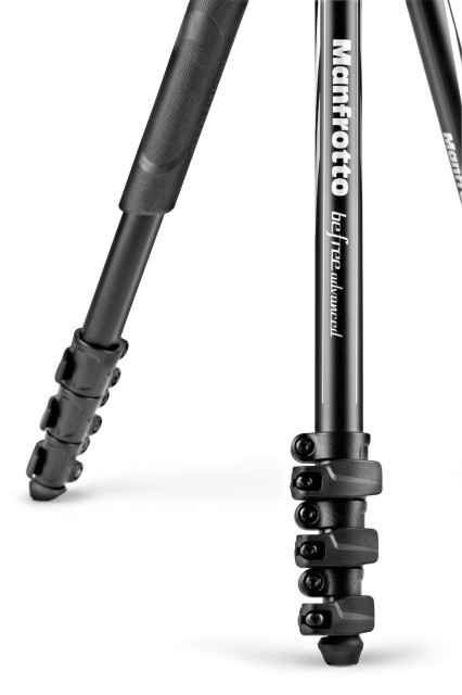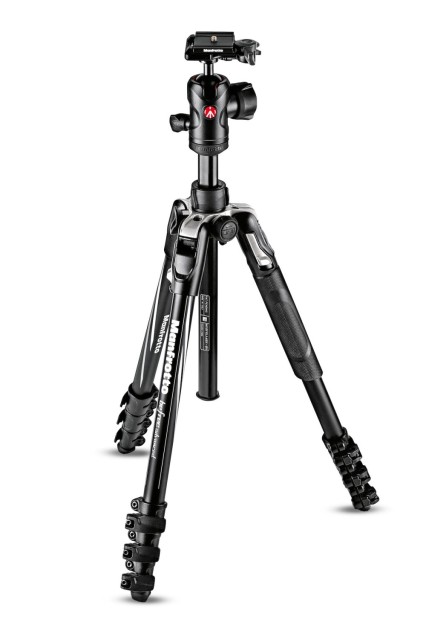 Hliníkový cestovný statív Manfrotto MKBFRLA4BK-BH Befree Advanced Lever váži 1,59 kg, 4-dielny hliníkový kit, ktorý sa dá zložiť na 40 cm, vysunúť na 151 cm (128 cm bez stĺpika) a unesie 8 kg s hladkou guľovou hlavou, nohami s pákovým uzáverom, tromi uhlami nôh a 90° stĺpikom – poskytuje pevnú stabilitu pre bezzrkadlové a DSLR cestovné kity.
