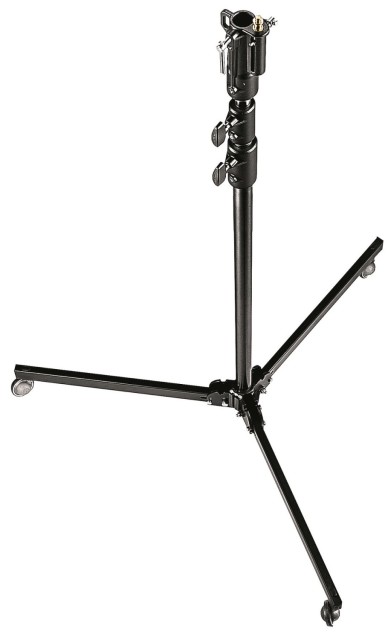 Manfrotto 298B Black Aluminium 3-Section Studio Stand je 6 kg profesionálny ľahký stojan so striebornými eloxovanými hliníkovými stĺpikmi (35/30/25 mm), čiernou oceľovou skladacou základňou na brzdných kolesách, jednou vyrovnávacou nohou a nosnosťou 15 kg (5 kg pri plnom predĺžení 300 cm) – poskytuje stabilnú, mobilnú podporu pre stredné štúdiové…