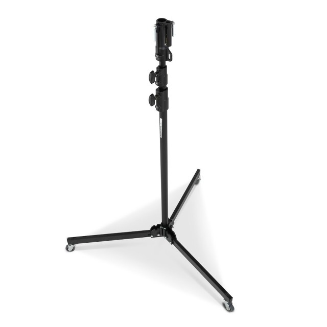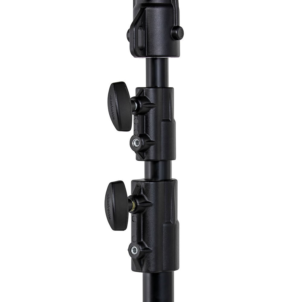 Manfrotto 298B Black Aluminium 3-Section Studio Stand je 6 kg profesionálny ľahký stojan so striebornými eloxovanými hliníkovými stĺpikmi (35/30/25 mm), čiernou oceľovou skladacou základňou na brzdných kolesách, jednou vyrovnávacou nohou a nosnosťou 15 kg (5 kg pri plnom predĺžení 300 cm) – poskytuje stabilnú, mobilnú podporu pre stredné štúdiové svetlá, softboxy alebo nadhlavné zariadenia.