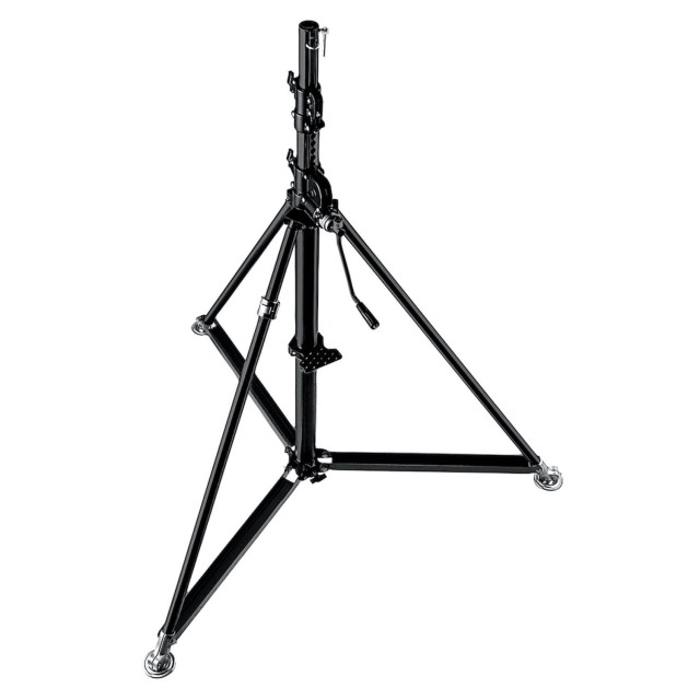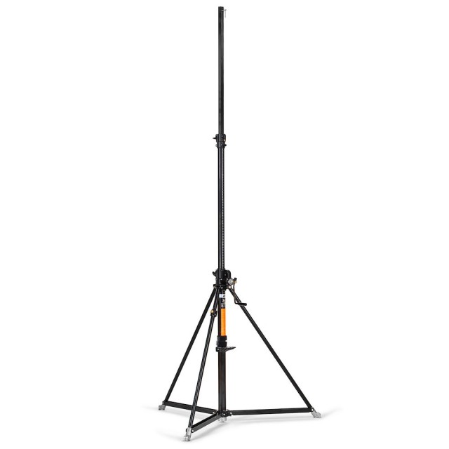 Manfrotto 387XBU Black Stainless Steel Super Wind Up Stand je profesionálny odolný osvetľovací stojan navrhnutý pre maximálnu stabilitu a dosah. S ozubeným stĺpom, dvoma chrómovanými oceľovými stúpačkami a maximálnou nosnosťou 80 kg sa dá vysunúť až na 366 cm a ponúka bezpečnosť certifikovanú TÜV.
