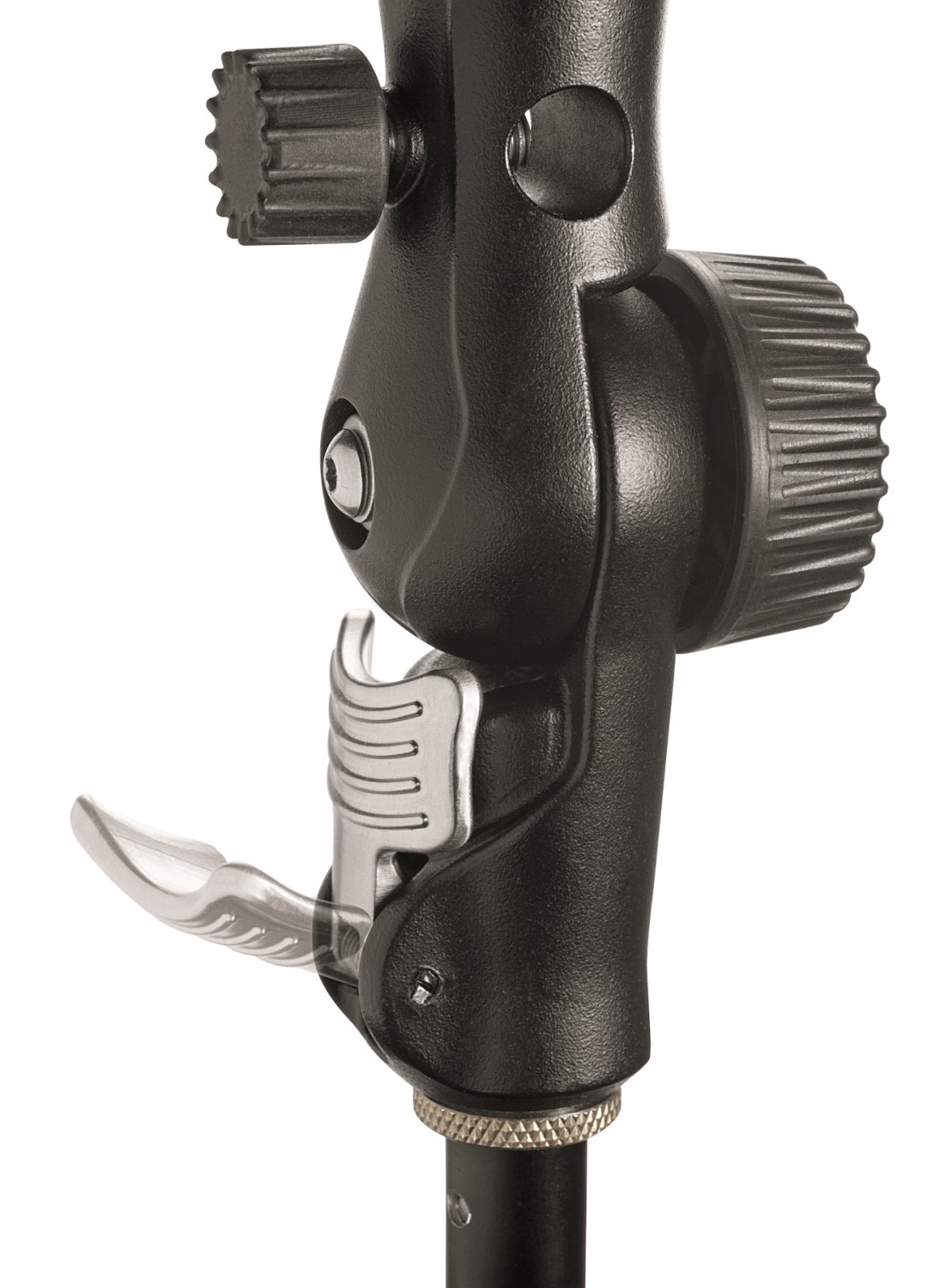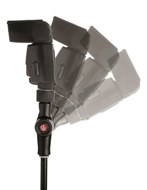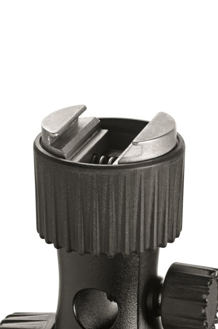 Manfrotto MLH1HS-2 Cold Shoe Tilt Head je 200 g hliníkový naklápací držiak s cold shoe, päticou na dáždnik a 5/8" baby receiverom – vybavený inteligentným protizávažím a uzamykacím gombíkom na bezpečné upevnenie bleskov alebo malých LED diód s hmotnosťou do 2 kg na akýkoľvek svetelný stojan.