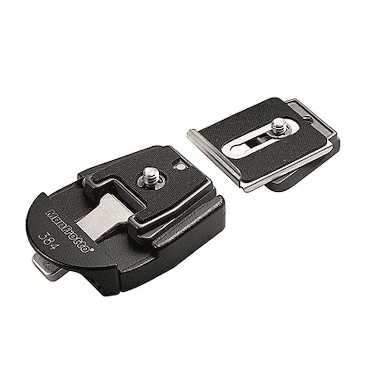 Adaptér Manfrotto 384 Dove Tail Plate je 170 g hliníkový rýchloupínací systém s konštrukciou typu „dovetail“, ktorý obsahuje dosky 384PL a 384PLARCH a upevňovacie skrutky 1/4"-20 a 3/8"-16. Umožňuje rýchlu a bezpečnú výmenu fotoaparátov pre architektonické alebo makro zariadenia na kompatibilných hlavách Manfrotto.