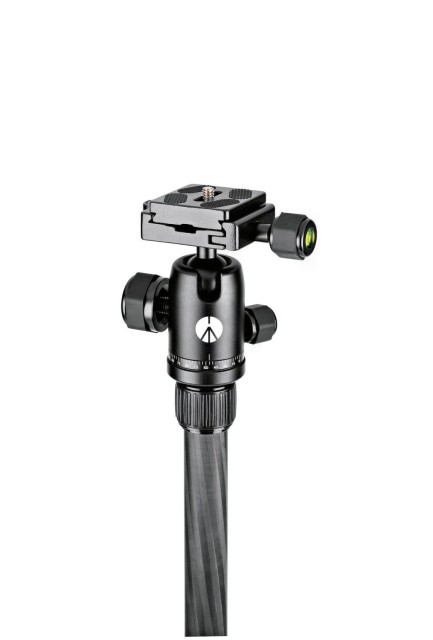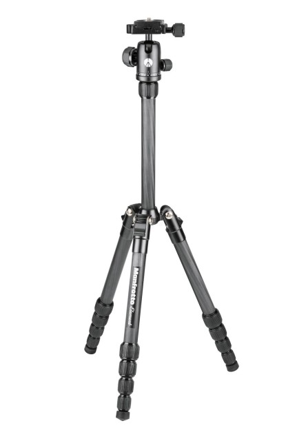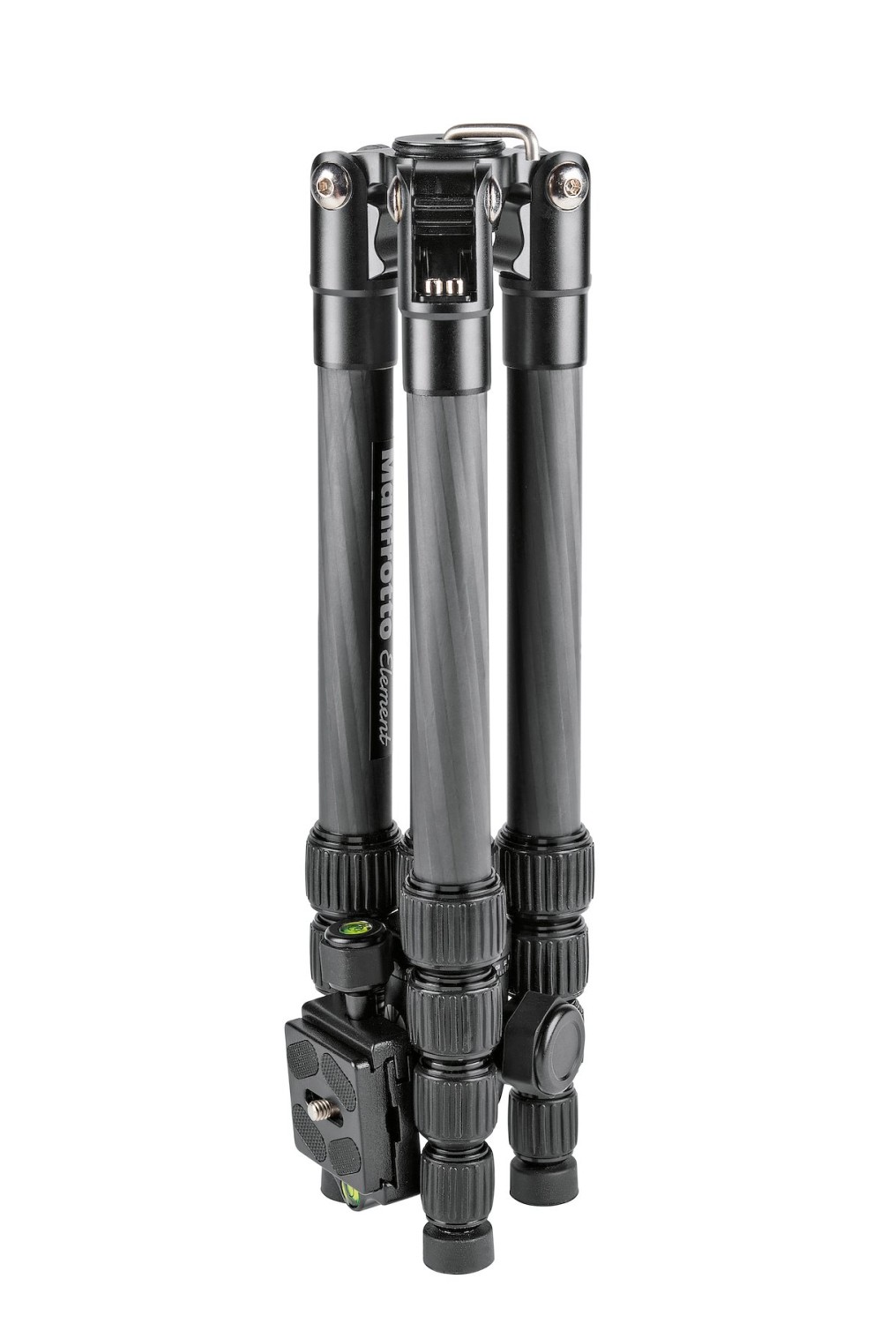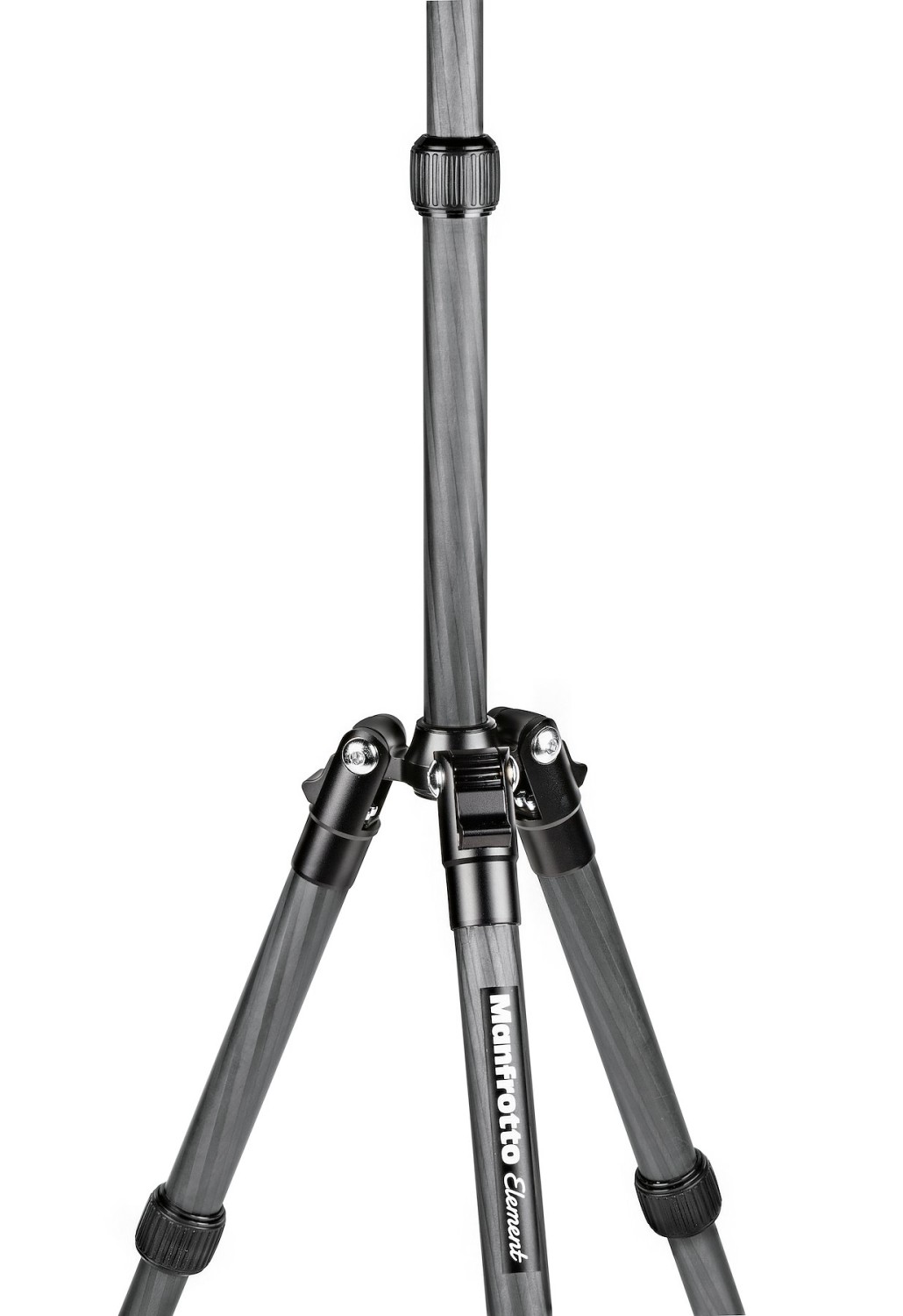 Malý statív Manfrotto MKELES5CF-BH Element Traveller s guľovou hlavou je ultraprenosná cestovná súprava s hmotnosťou 1,05 kg, ktorá sa dá zložiť na 32 cm, predĺžiť na 143 cm a unesie 6 kg CSC zaťaženie s hladkou hliníkovou guľovou hlavou typu Arca, nezávislým 360° uzáverom otáčania, nohami s otočným uzáverom tri uhly nôh a teleskopický stredový stĺp – kompletný s polstrovanou taškou na prenášanie.