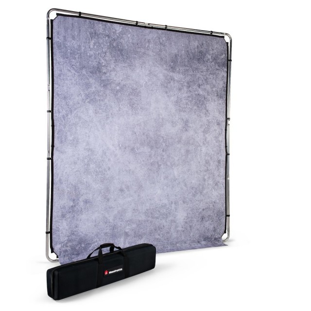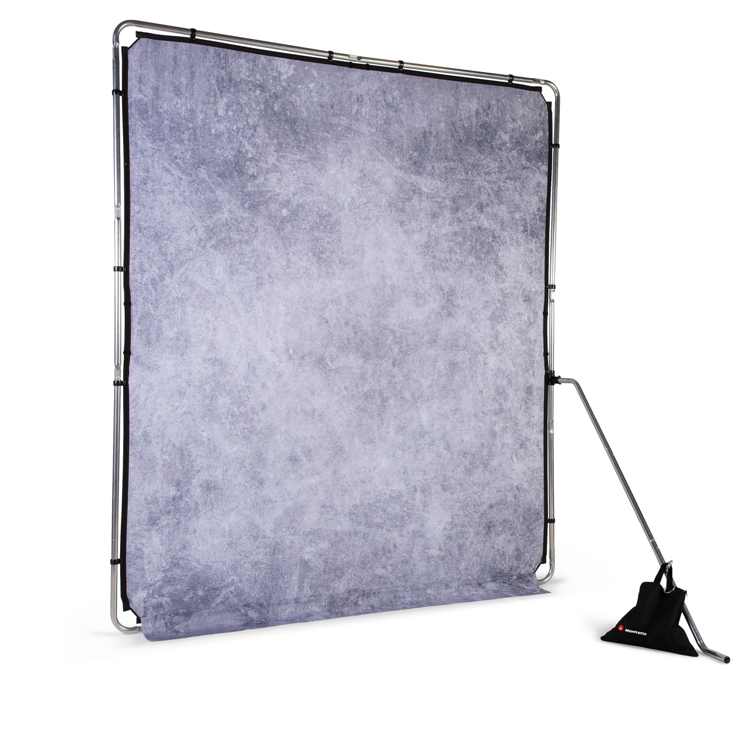 Manfrotto LL LB7930 EzyFrame Vintage Background 2x2,3 m Concrete je veľkoformátová skladacie fotografické pozadie s odolným hliníkovým rámom a tmavým polyesterovým povrchom, ktorý je odolný voči deformáciám.