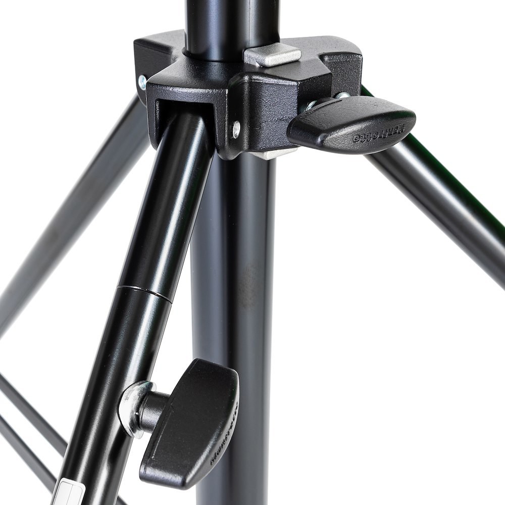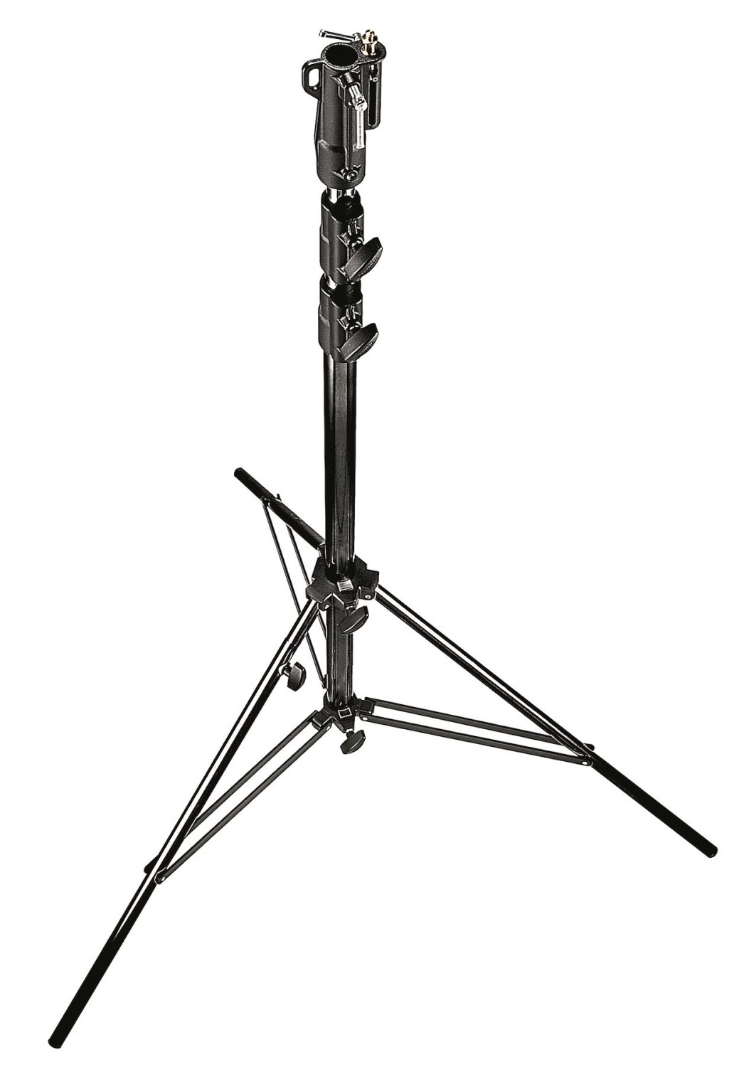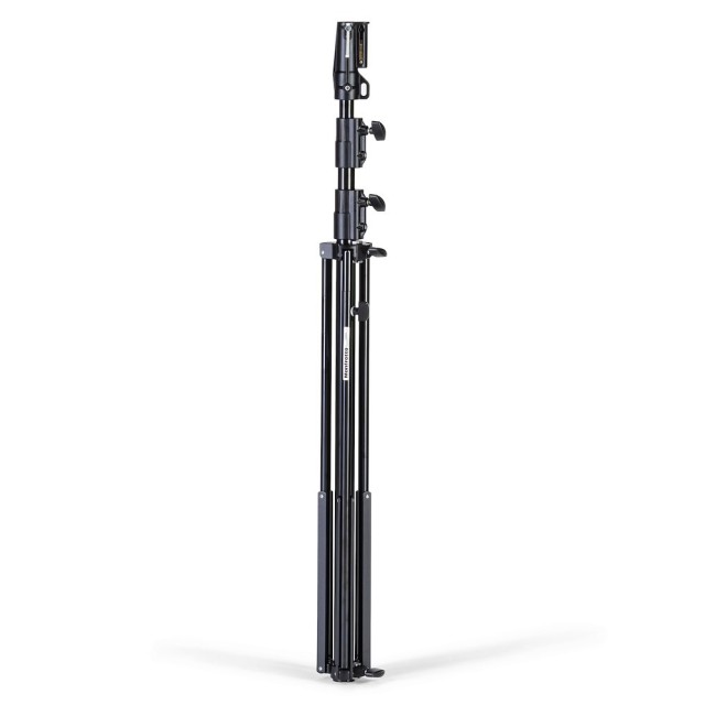 Manfrotto 126BSU Black Steel Heavy Duty Stand je 8,3 kg vážiaci 3-dielny junior stojan s výškou 131–333 cm a nosnosťou 40 kg (3 kg pri maximálnom vysunutí), dvojitými výstuhami nôh, vyrovnávacou nohou, univerzálnou 28 mm objímkou + 16 mm čapom + 3/8" skrutkovou hlavou a odporúčanými kolieskami (109/110/110G) – poskytuje pevnú podporu pripravenú na použitie na mieste pre veľké HMI, LED alebo boom rigy.
