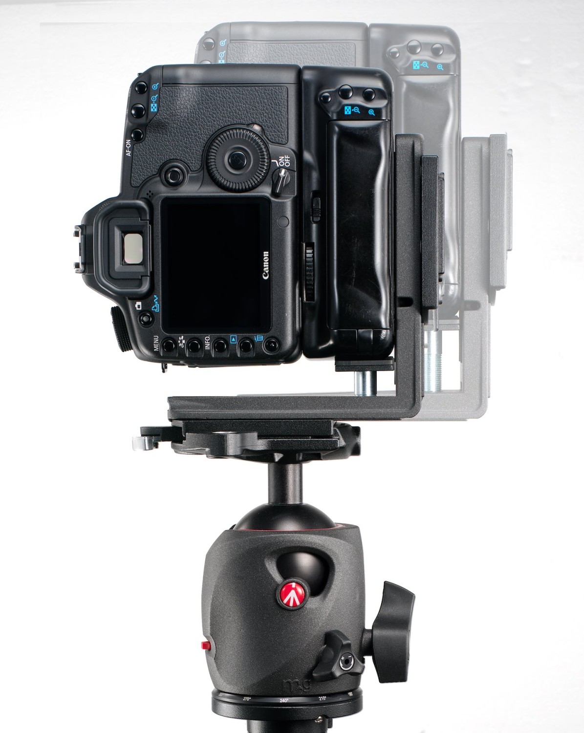 Manfrotto MS050M4-RC4 L Bracket sa zamyká prostredníctvom systému RC4 s priloženou doskou 410PL, ktorá ponúka veľkú kontaktnú plochu a dvojité bezpečnostné zámky pre nulový posun pri zaťažení do 15 kg. Telo z horčíka je vybavené špecifickými protiskrutkovými kolíkmi a gumovými podložkami, ktoré obopínajú základňu fotoaparátu a zabraňujú otáčaniu pri otočení o 90°. Ofsetový dizajn udržiava vyrovnanie optickej osi nad stredom statívu v oboch orientáciách, čím eliminuje potrebu opätovného kompozovania po otočení.