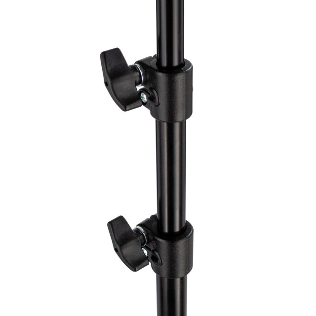 Manfrotto 157B-4 je klasický, v praxi overený 4-dielny mikrofónový výložník určený na každodenné profesionálne použitie. Je vyrobený z čierneho eloxovaného hliníka, plynule sa vysúva až na dĺžku 223 cm (viac ako 7 stôp), ale na prepravu sa dá zložiť na kompaktných 67 cm. Horný koniec je zakončený univerzálnym 5/8″ Baby štandardom s odnímateľnou 3/8″ závitovou špičkou, ktorá sa hodí prakticky na každý tlmič nárazov, mikrofónovú sponu alebo príslušenstvo na trhu. Pozitívne otočné uzávery zabezpečujú nulový posun pod zaťažením, zatiaľ čo ľahká konštrukcia s hmotnosťou 610 g minimalizuje únavu obsluhy počas dlhých natáčaní.