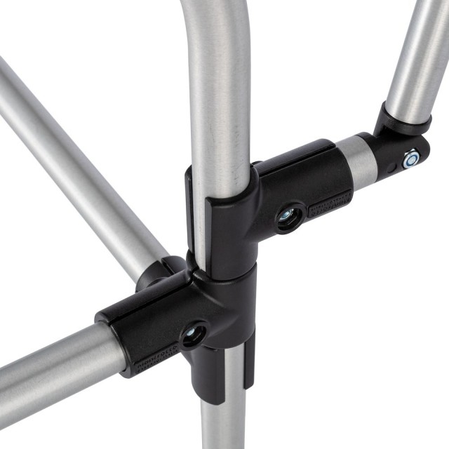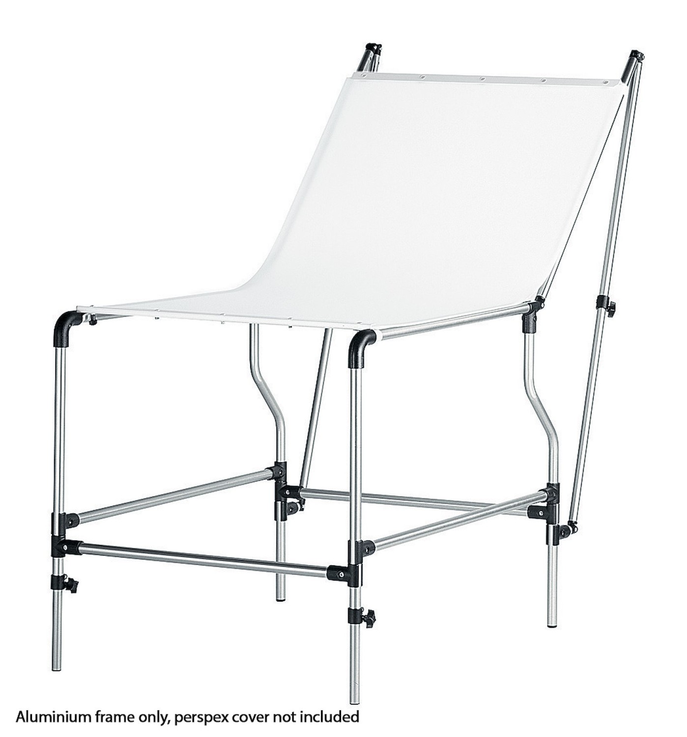 Stôl je vyrobený z pochrómovanej ocele, čo zaručuje dlhú životnosť a spoľahlivú oporu. Je vybavený nastaviteľným sklopným zadným panelom a nastaviteľnými prednými nohami, čo fotografom umožňuje jemné doladenie uhlov a nastavenia osvetlenia pre plynulé prechody pozadia a kontrolované odrazy.