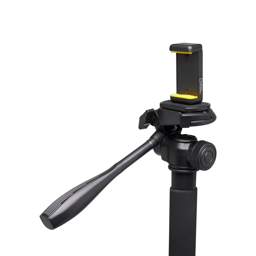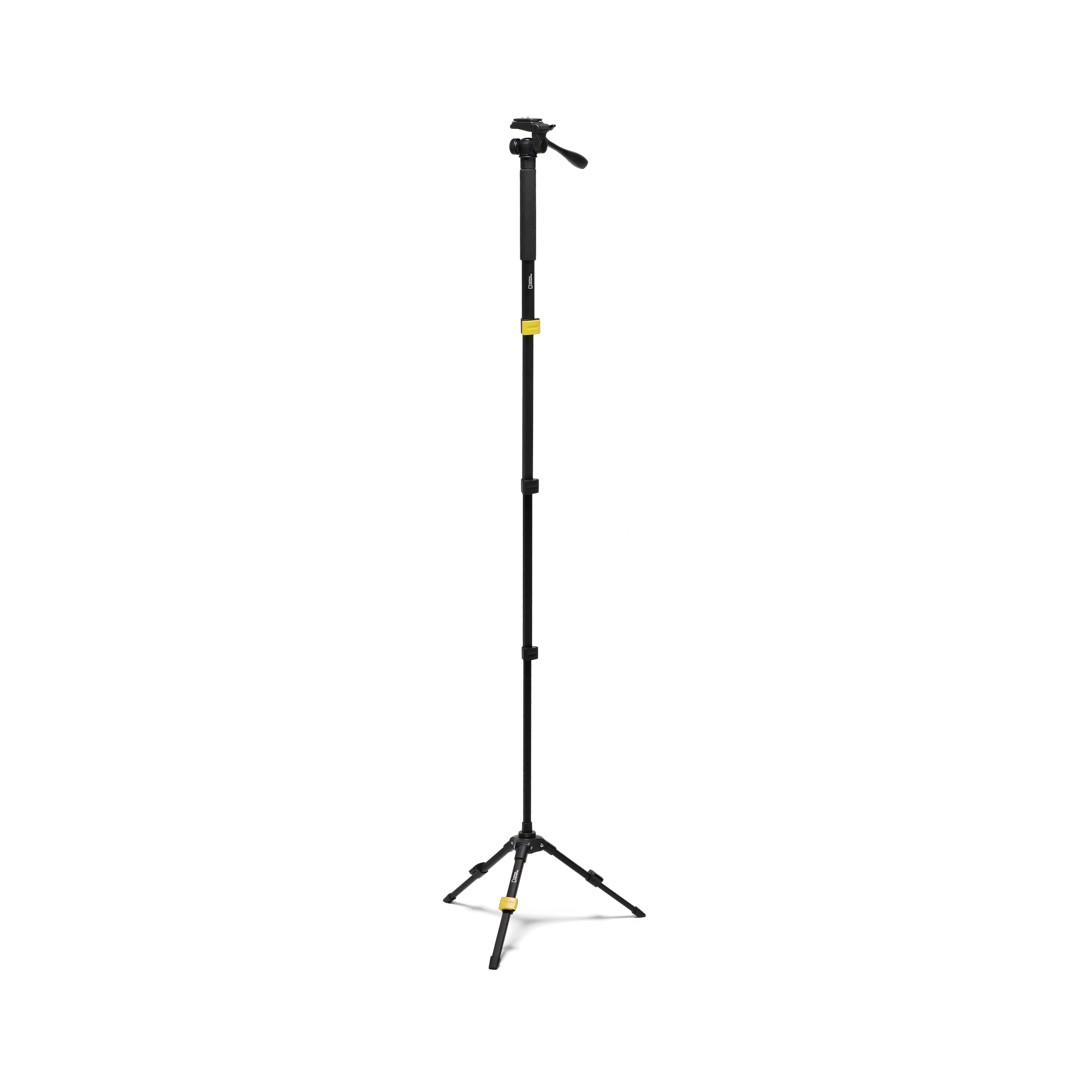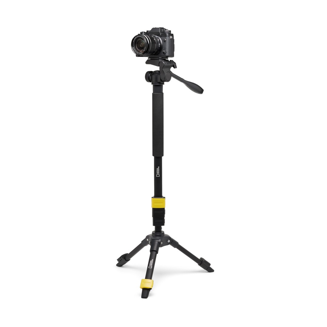 Monopod Manfrotto NGPM002 National Geographic Photo 3-in-1 je ľahký hliníkový systém s hmotnosťou 860 g, ktorý sa prispôsobí akémukoľvek fotografovaniu. Štyri sekcie s otočným uzáverom sa dajú vysunúť na impozantnú dĺžku 189 cm pre zábery nad hlavou, zatiaľ čo odnímateľná základňa statívu s dvojdielnymi nohami dodáva pevnú stabilitu alebo sa dá premeniť na kompaktný stolný statív pre makro alebo videohovory. 3-osová hlava s funkciou otáčania/naklápania je vybavená patentovanou rýchloupínacou doskou 1/4"-20, nezávislým zámkom otáčania a 90° vertikálnym naklápáním pre plynulú orientáciu na výšku. Penová rukoväť zaisťuje pohodlie a priložená svorka na smartfón (do 8,4 cm) podporuje tvorbu obsahu pomocou telefónu.