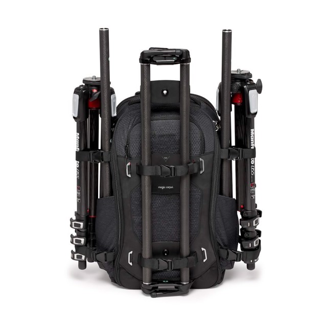 Batoh pojme profesionálne vybavenie, ako sú digitálne zrkadlovky, CSC, viacero objektívov, menšie skladacie drony, stabilizátory a podobné vybavenie. Špeciálna priehradka na stabilizátor je oddelená od hlavného vrecka