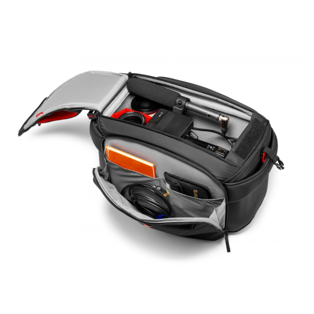 Kompaktná taška pre profesionálnych filmárov. Taška Pro Light 192N je určená pre modely kamier, ako sú: C100, C300, C500, AG-DVX200. Vonkajší plášť je vyrobený z kvalitnej nylonovej tkaniny odolnej proti roztrhnutiu, navyše odpudzuje vodu a absorbuje nárazy. To z nej robí spoľahlivú, odolnú a praktickú tašku v každej situácii. Hlavný vstup je vybavený dvojitým zipsom. Vnútorný priestor je vybavený priehradkami Manfrotto Flexi.