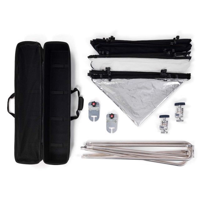 Ľahko prenosná súprava pevného rámu s vymeniteľnými látkami na ľahkú prácu. Vysokokvalitný ľahký hliníkový rám umožňuje jednoduchú manipuláciu. Všestranné použitie na fotografovanie a natáčanie videa.