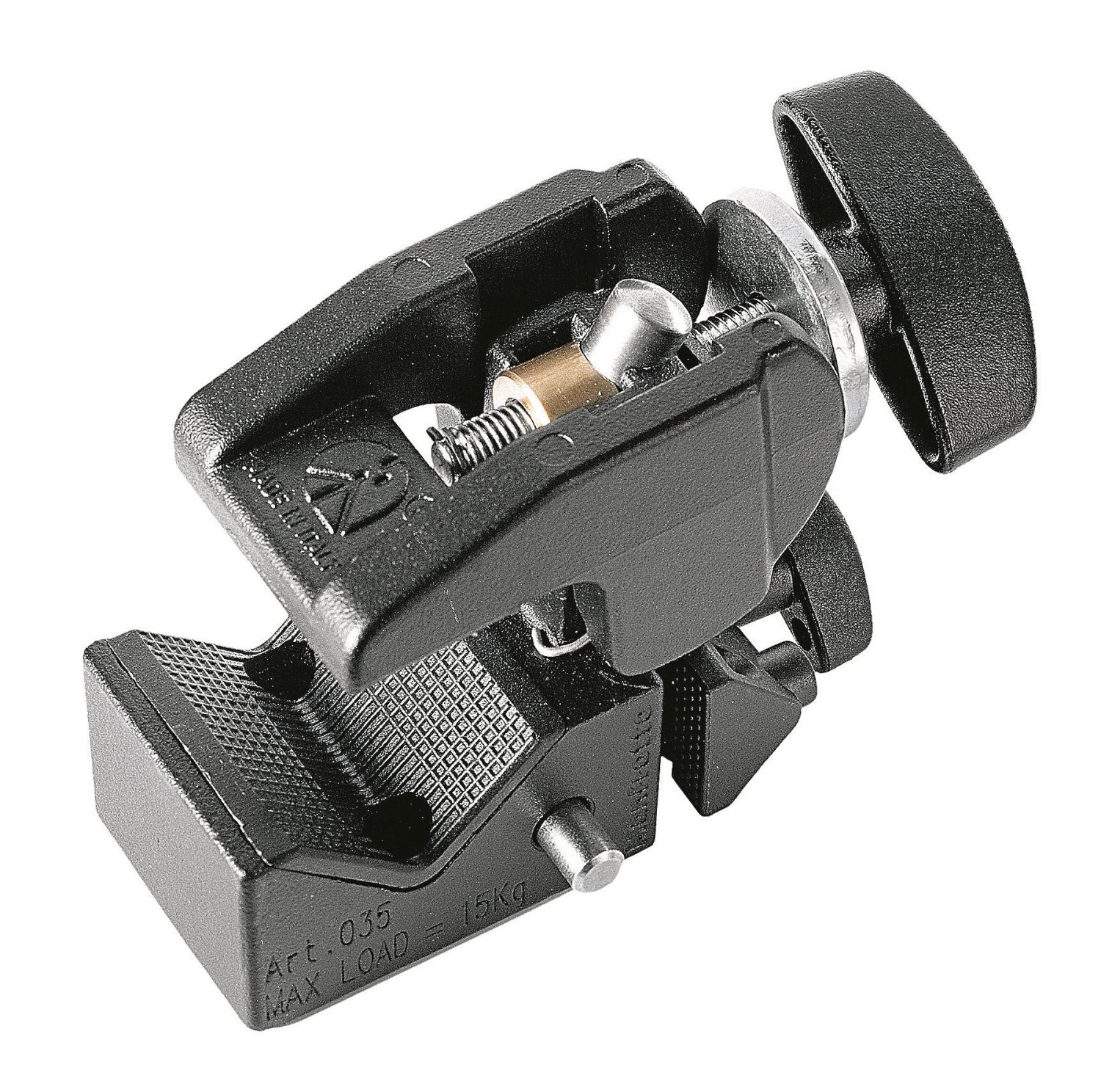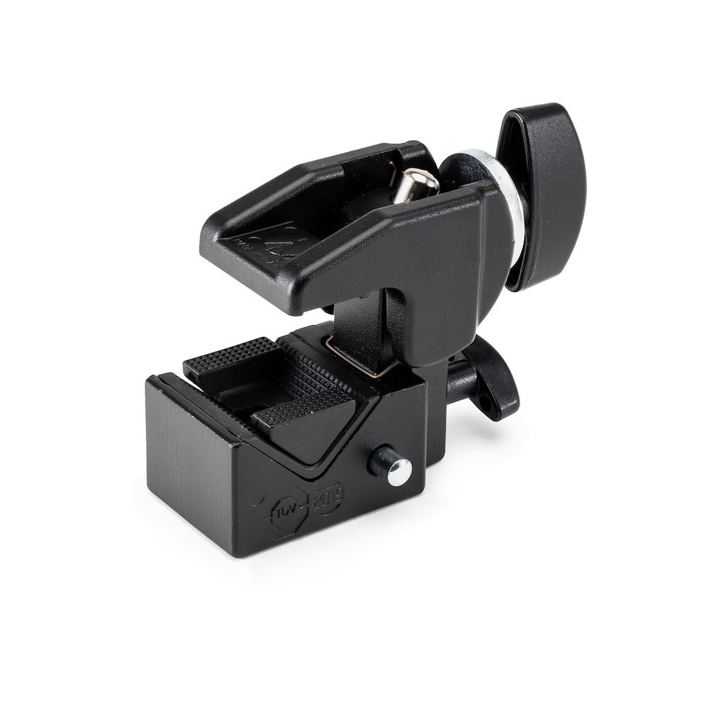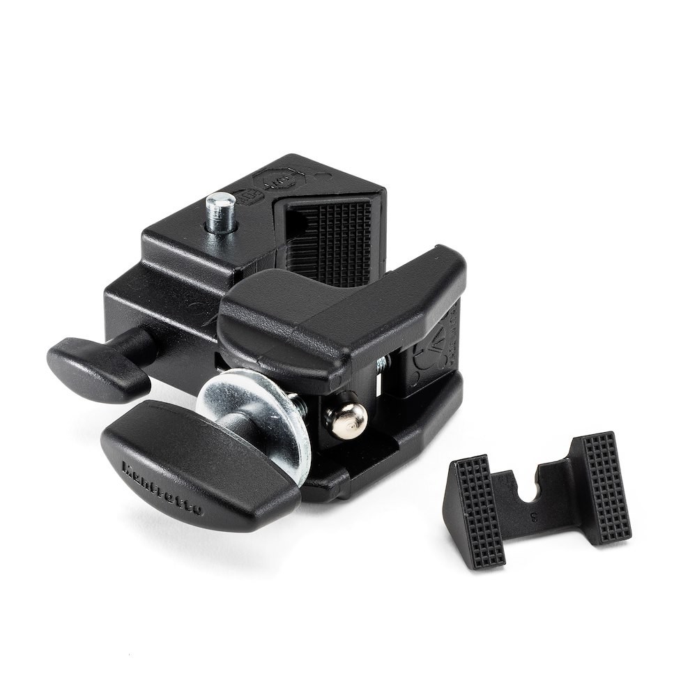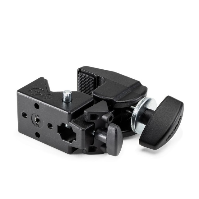 Manfrotto Quick Action Super Clamp je intuitívny, taliansky navrhnutý montážny systém (0,488 kg), ktorý bezpečne uchopí rúrky alebo dosky s priemerom 13–55 mm pomocou rýchlo uzamykateľnej čeľuste a priloženého klinu s plochým povrchom, pričom podporuje až 15 kg prostredníctvom 5/8" (16 mm) Baby socket; Je ideálny pre použitie v štúdiu alebo v exteriéri, funguje ako svorka, stojan alebo kreatívne predĺženie – upevňuje kamery, svetlá, háčiky alebo ďalšie svorky na statívy, tyče, dvere alebo trámy s bezkonkurenčnou rýchlosťou, univerzálnosťou a odolnosťou certifikovanou TUV.