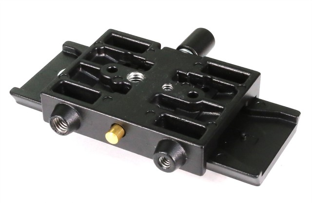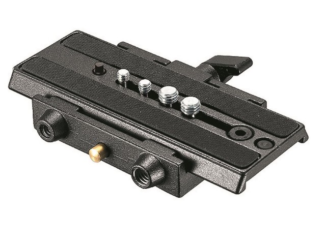 Manfrotto 357-1 je kompletná sada adaptérov: robustná hliníková základňa s veľkou poistnou pákou a sekundárnym bezpečnostným kolíkom, plus známa posuvná doska 357PLV (dĺžka 120 mm, zdvih 80 mm). Doska môže byť vybavená skrutkou 1/4″-20 alebo 3/8″-16 (obe sú súčasťou balenia) a má zasúvateľný video kolík, ktorý zabraňuje krúteniu na profesionálnych videokamerách. Vďaka mimoriadne dlhému zdvihu je možné za pár sekúnd ľahko vyvážiť ťažké zariadenia s matnými boxmi, follow-focusom a dlhými objektívmi. Prijímač sa pripája priamo na akúkoľvek videohlavu Manfrotto, ktorá používa systém 357.