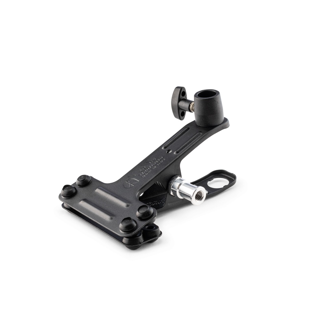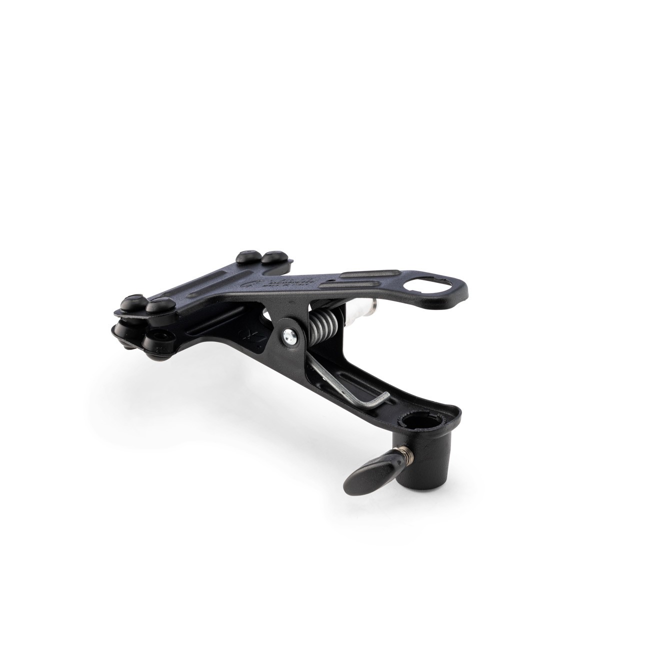 Manfrotto 175Z je jedným z najuniverzálnejších držiakov, aké kedy boli vyrobené. Jeho silné pružinové čeľuste sa otvárajú do šírky 40 mm a sú vystlané ochrannými gumovými podložkami, zatiaľ čo jedna rukoväť je vybavená integrovaným 16 mm Baby štandardom so závitom 1/4″-20, čo umožňuje okamžité pripevnenie guľových hláv, malých svetiel, husacích krkov alebo čohokoľvek s 1/4″ skrutkou. Fotografi ho používajú na uchytenie reflektorov, vlajok, pozadia alebo na rýchle vytvorenie nadhlavných konštrukcií pomocou upevnenia na police, dvere alebo svetelné stojany. Je ľahký, kompaktný (15,6 cm v uzavretom stave) a vyrobený tak, aby vydržal, a je to svorka, ktorá je trvalo súčasťou výbavy každého profesionála.