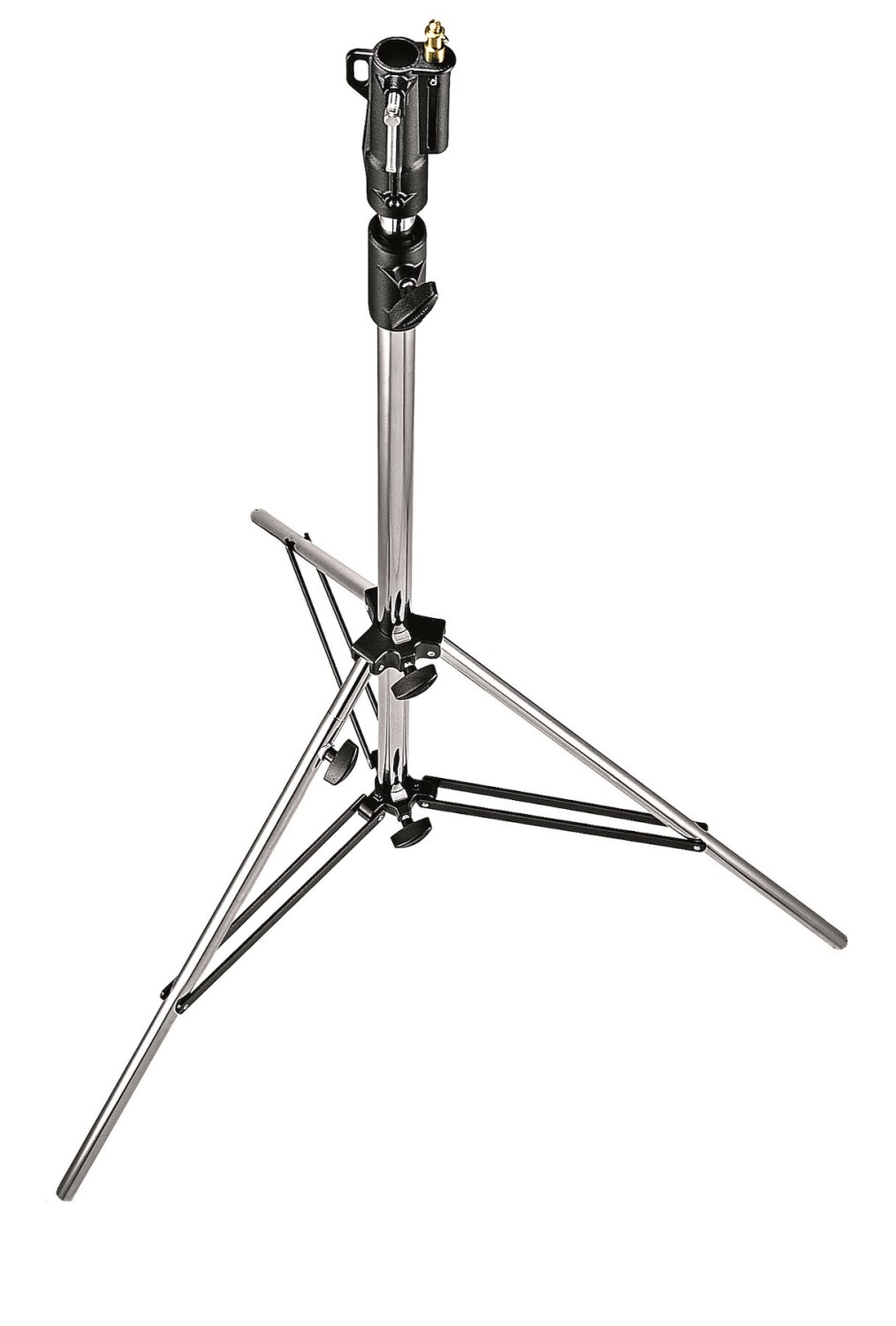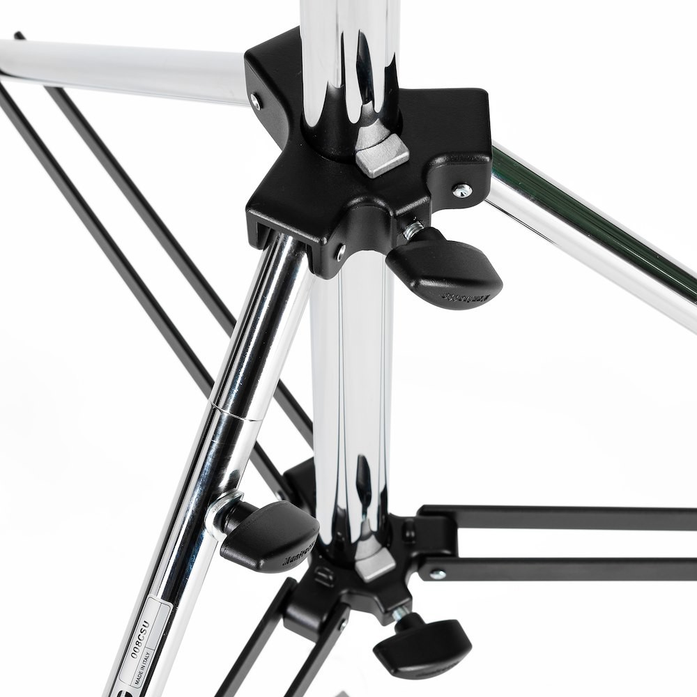 Manfrotto 008CSU je klasický pochrómovaný oceľový stojan Junior „Cine“: odolný, s nosnosťou 30 kg, nízkoprofilový pracovný kôň s dvojitými výstuhami nôh, jednou vyrovnávacou nohou a univerzálnou hlavou typu 14. S výškou iba 212 cm, ktorú možno znížiť na 131 cm, je to perfektný odolný stojan pre veľké HMI, veľké softboxy, rámové konštrukcie alebo kdekoľvek, kde potrebujete pevnú oporu s nízkym ťažiskom a schopnosťou udržať rovnováhu na nerovnom teréne.