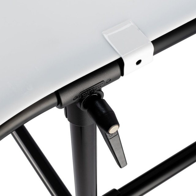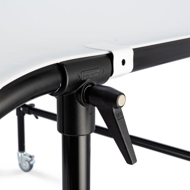 Manfrotto 220B je štandardný veľkoformátový stôl na fotografovanie zátišia určený pre profesionálnych fotografov produktov a e-commerce. Jeho masívny čierny rúrkový hliníkový rám s rozmermi 200 × 122 cm podporuje bezšvíkový biely priehľadný panel z Perspexu, ktorý je možné osvetliť zospodu alebo zozadu, aby sa vytvorilo čisté high-key pozadie alebo mäkké osvetlenie bez tieňov. Zadný panel sa dá nakloniť z horizontálnej do úplne vertikálnej polohy (výška 193 cm) a do akéhokoľvek uhla medzi týmito polohami, čo umožňuje všetko od plochých záberov až po dramatické zábery produktov z nadhľadu. Nosnosť 15 kg ľahko zvládne ťažké sklo, elektroniku alebo viacero predmetov, zatiaľ čo priložené pásky na suchý zips udržujú pozadia alebo rekvizity na mieste. Pre ľahké premiestňovanie v ateliéri je možné pridať voliteľné sady koliesok (165 alebo 109).