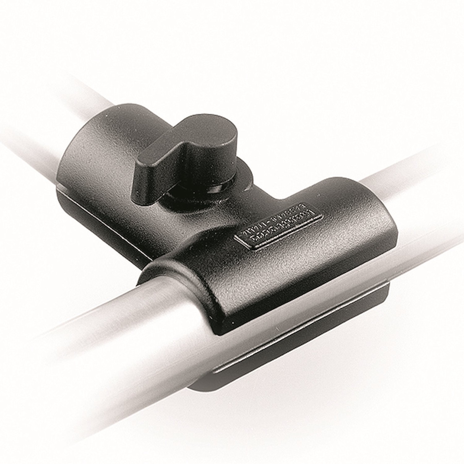 Manfrotto MT004 T-Clamp (čierna) je profesionálny kolmé spojovacie prvok, ktorý umožňuje rýchlu montáž pevných 90° spojov pomocou 35 mm okrúhlych rúrok. Je ideálny na vytváranie vlastných priečnych tyčí, bočných ramien, rámov bránok alebo na predĺženie systémov Autopole a podporných systémov pozadia v pravom uhle. Jeho presne opracované čeľuste a veľký utahovací gombík zaisťujú maximálnu priľnavosť a nulové preklzávanie pod zaťažením.