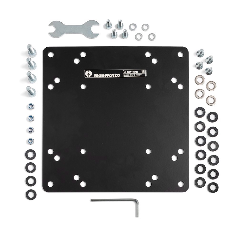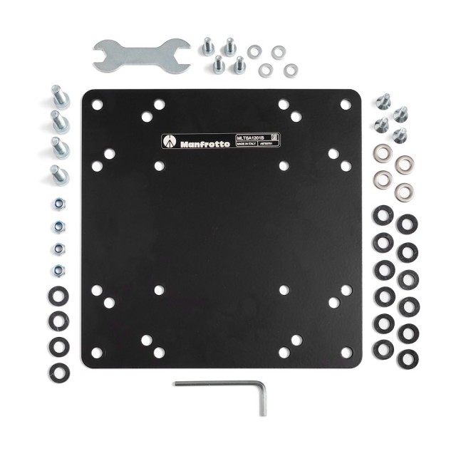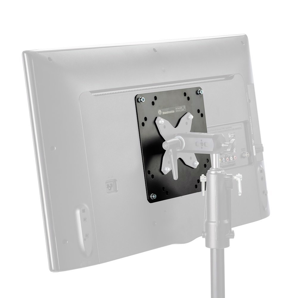 Adaptérová doska Manfrotto TetherGear VESA je príslušenstvo pre držiak monitora TetherGear VESA. Po bezpečnom pripevnení k držiaku monitora VESA môžete upevniť väčšie monitory a obrazovky s konfiguráciami VESA 120x180 mm, 180x120 mm, 200x100 mm a 200x200 mm.