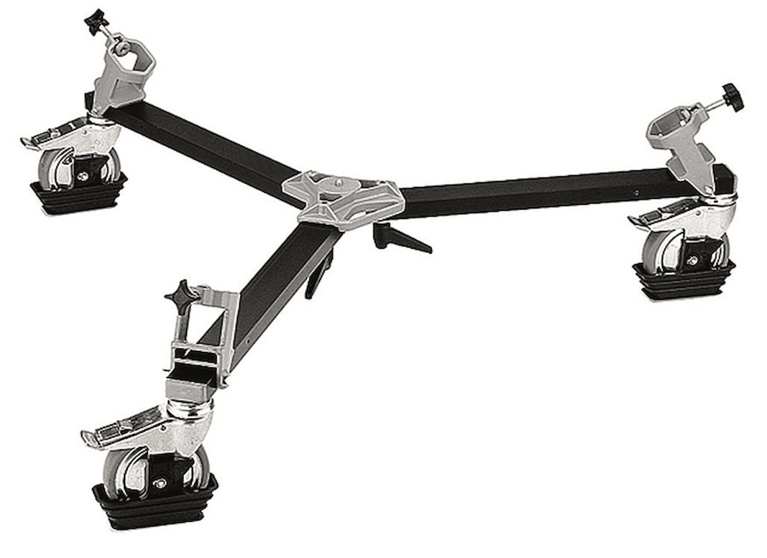 Manfrotto 114 Video/Movie Heavy Dolly je legendárny štúdiový ťažký vozík s nosnosťou 60 kg, masívnymi 127 mm (5") individuálne brzdenými kolesami, ochrannými krytmi káblov a skladacou hliníkovou konštrukciou. Je určený pre ťažké videostativy, stojany Cine alebo veľké statické statívy a poskytuje ultra hladké sledovacie zábery a pevné uzamknutie na akejkoľvek podlahe štúdia – stále je to najvyhľadávanejší vozík pre vysielanie, kiná a profesionálne video zariadenia po celom svete.