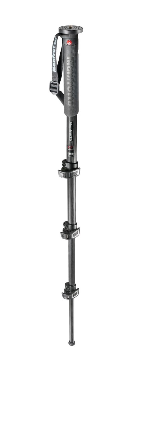 Manfrotto MPMXPROC4 XPRO 4-sekčný karbónový monopod je 600 g, 52 cm dlhá skladacia tyč z uhlíkových vlákien, ktorá sa dá predĺžiť na 164,5 cm, unesie 7 kg, má nohy s pákovým uzáverom, otočný 1/4"-3/8" vrchný skrutku, kompatibilitu so základňou FLUIDTECH a gumovú pätku – poskytuje ultralahkú profesionálnu výšku pre športové, prírodné alebo davové zábery.