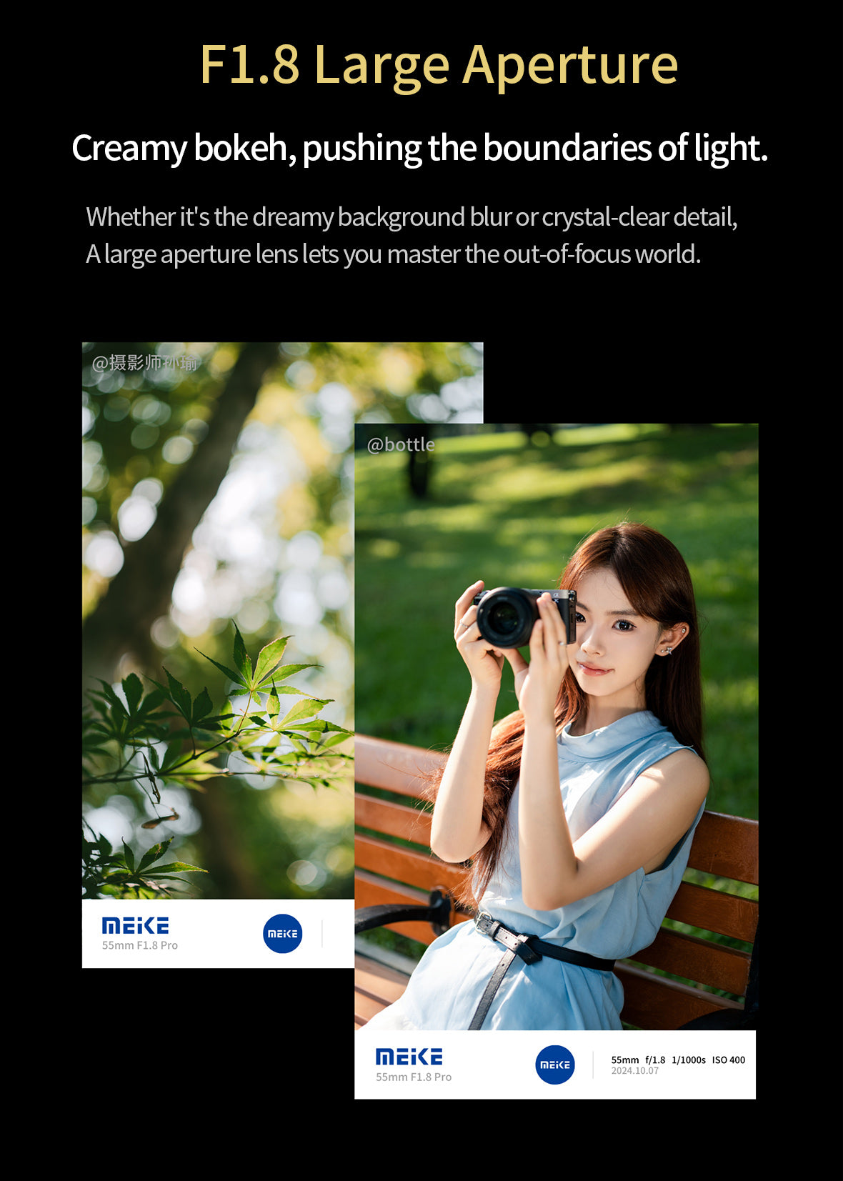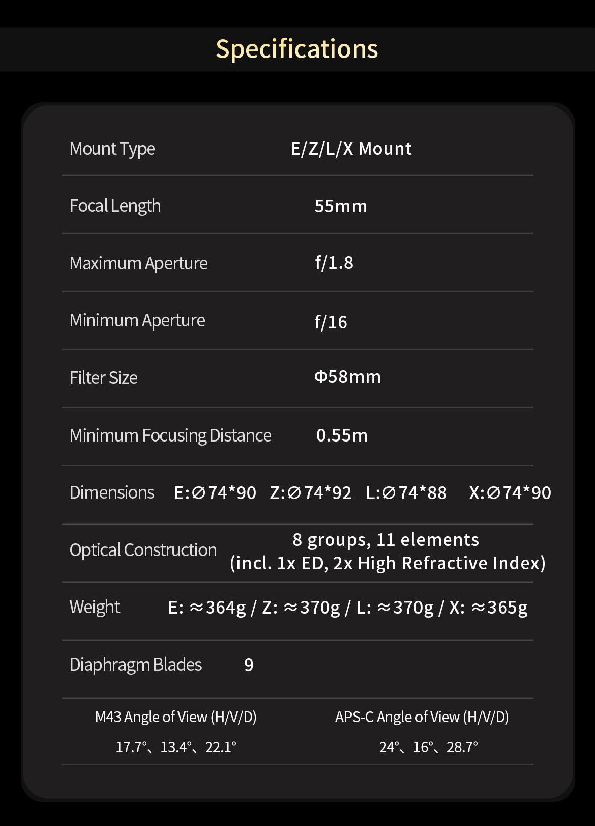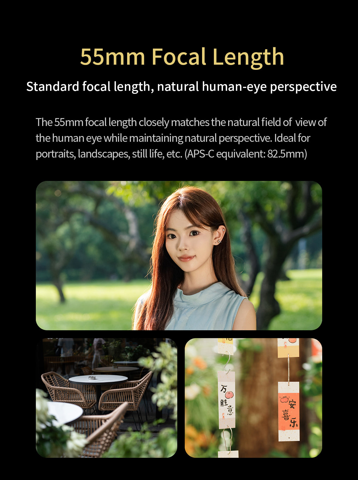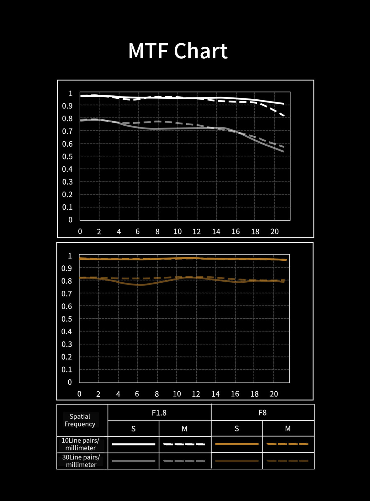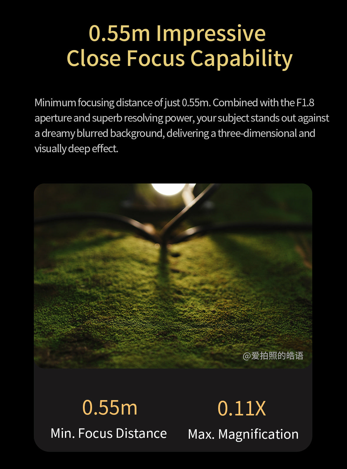55 mm F1,8 podporuje fotoaparát s vysokým rozlíšením a snímačmi 8K. Dokáže obnoviť každý detail obrazu.Výkonné rozlíšenie dokáže uspokojiť vyššie požiadavky na kvalitu obrazu.