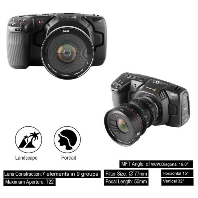 Plne manuálny filmový objektív s vysokou svetelnosťou T2,2 a ohniskovou vzdialenosťou 50 mm. Objektív poskytuje ostré snímky s minimálnymi farebnými chybami a plynulým vykreslením obrazu mimo hĺbky ostrosti, potlačeným efektom "dýchania" a dlhým zdvihom zaostrovacieho krúžku (270°) s prevodom M0,8 a presnými značkami (presnosť približne 10"; prevod aj na clonovom…