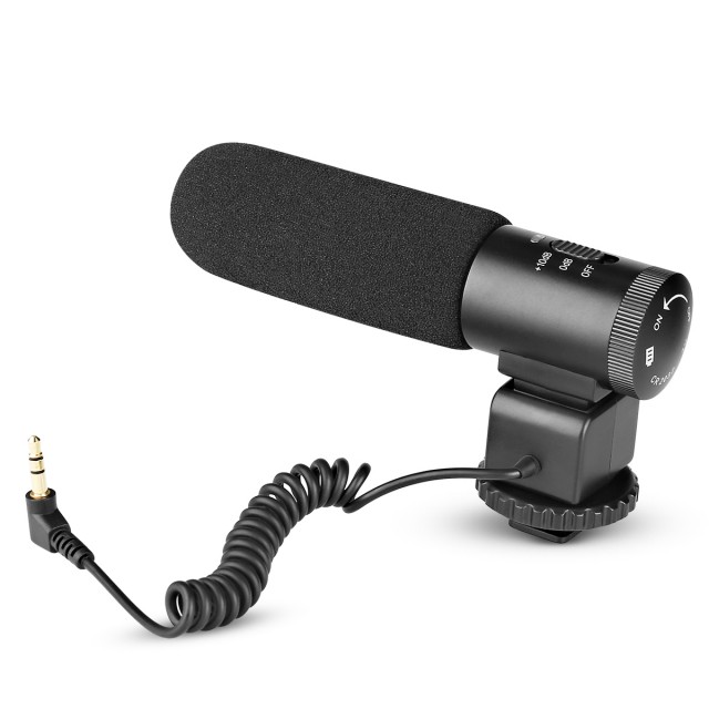 Smerový elektretový mikrofón pre kamery na vlogovanie, podcasty, vysielanie na YouTube atď. Ponúka výkonnú redukciu šumu, vysokofrekvenčný filter (200 Hz), prepínač zosilnenia +10 dB, redukciu pre zásuvku blesku, štandardný 3,5 mm výstup TRS, napájanie batériou CR2032 (spotreba cca 4 mA, 50-60 h).