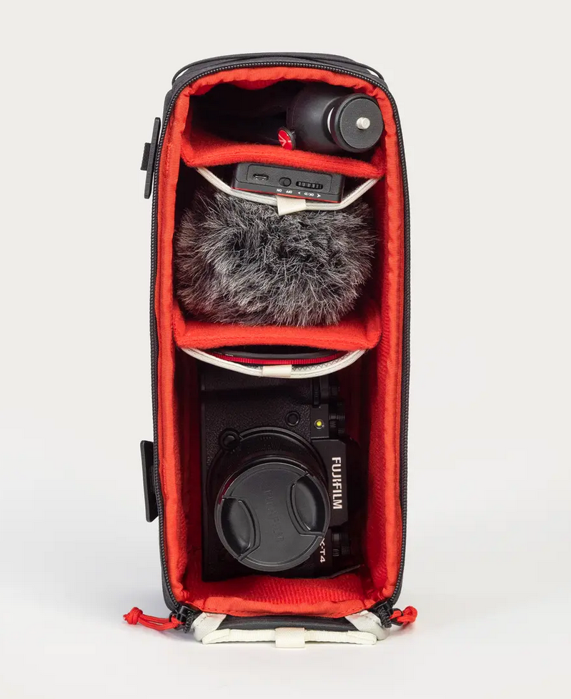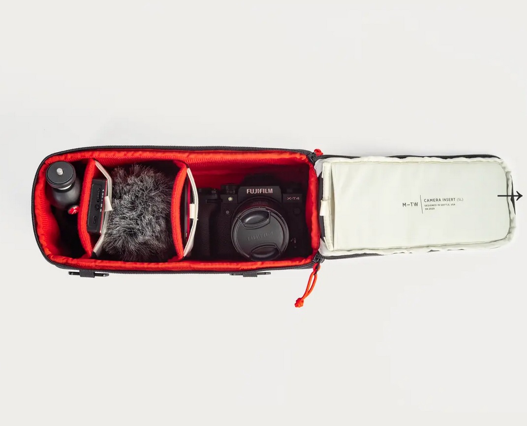 Zmeňte akýkoľvek batoh na tašku na fotoaparát. Vložka na fotoaparát je navrhnutá tak, aby dokonale zapadla do našich batohov a tašiek MTW / Everything a predstavuje dokonalý spôsob, ako prenášať základnú výbavu fotoaparátu. Hodí sa aj do väčšiny iných denných batohov, ak chcete pre svoje vybavenie fotoaparátu dodatočnú ochranu. Vďaka veľkému bočnému prístupovému zipsu a vymeniteľným prepážkam si ju môžete nastaviť, ako sa vám páči. Unesiete v ňom fotoaparát veľkosti Canon 5D (bez batériového gripu) s objektívom 70-200 mm a priestor na ďalšie doplnky. Otvor možno tiež nechať otvorený a zasunutý mimo cesty pre super rýchly prístup, najmä pri batohoch, ktoré majú bočný prístup na zips. Na rozdiel od iných veľkých, neskladných jednotiek na fotoaparát je táto jednotka dostatočne veľká na to, aby ste v nej mohli nosiť základnú výbavu fotoaparátu a aby vám v batohu zostalo miesto na ďalšie vybavenie.