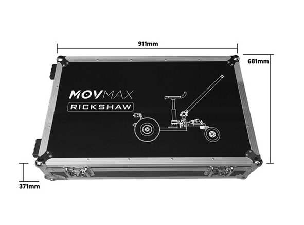 Prepravný kufor MOVMAX pre terénnu rikšu je odolný, vodovzdorný čierny prepravný kufor s zapustenými kolieskami a bezpečnými zámkami, navrhnutý tak, aby bezpečne uložil a mobilizoval všetky modulárne komponenty systému rikše v priestrannom prázdnom interiéri s rozmermi 35,9 x 26,8 x 14,6 palca, chránenom odolnou konštrukciou z preglejky.