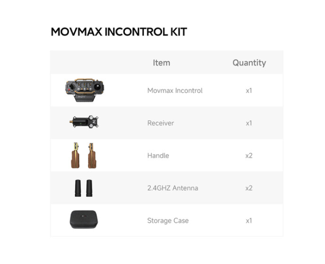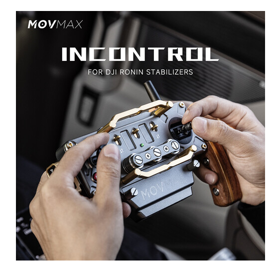 Bezdrôtový ovládač MOVMAX Incontrol pre DJI Ronin poskytuje presné, prispôsobiteľné ovládanie gimbalu až do vzdialenosti 150 m prostredníctvom 2,4 GHz, s nastaviteľnými trojosovými nastaveniami rýchlosti/zóny, centrováním jedným kliknutím, spúšťou REC, teleskopickými joystickmi z uhlíkových vlákien, odnímateľnými drevenými rukoväťami a vymeniteľnou batériou 3350 mAh 18650 s výdržou až 15 hodín; plne kompatibilný s DJI RS 4 Pro, RS 4, RS 3 Pro a RS 2 (nie RS 3).