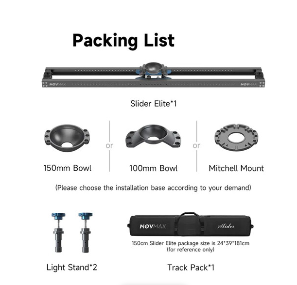 MOVMAX Slider Elite 35" je profesionálny lineárny posúvač vyrobený pre presnú kinematografiu, postavený na 35,4 palcových (89,9 cm) odolných hliníkových koľajniciach s trecím pohonom, ktorý poskytuje tichý a plynulý pohyb – ideálny pre dialógové scény, odhalenia produktov alebo jemné zábery. Integrovaná sledovacia platforma obsahuje 100 mm misku na bezpečné upevnenie štandardných polguľových fluidných hláv, ktoré zvládajú zaťaženie až 25 kg, aby vyhovovali bezzrkadlovým, DSLR alebo kompaktným kinematografickým zariadeniam s príslušenstvom. Dva priložené adaptéry na svetelný stojan s 5/8" baby pin prijímačmi umožňujú stabilné zdvihnutie na C-stojanoch alebo svetelných stojanoch, zatiaľ čo absencia vstavaných nôh maximalizuje flexibilitu montáže. Presné ovládače bŕzd a tlmičov umožňujú jemné nastavenie odporu a brzdnej sily pre opakované, kontrolované posúvanie. Napriek svojej robustnej konštrukcii, priložené polstrované puzdro na prenášanie zaisťuje ľahkú mobilitu pre prácu v teréne. Tento posúvač, na ktorý sa vzťahuje obmedzená 1-ročná záruka, kombinuje tichosť, pevnosť a bezproblémovú integráciu pre bezchybný horizontálny pohyb kamery v štúdiových alebo terénnych produkciách.