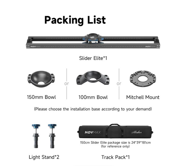 MOVMAX Slider Elite 70" je profesionálny lineárny posúvač vyrobený pre presnú kinematografiu, postavený na 70,8 palcov (179,8 cm) odolných hliníkových koľajniciach s trecím pohonom, ktorý poskytuje tichý a plynulý pohyb – ideálny pre dialógové scény, odhalenie produktov alebo jemné zábery. Integrovaná sledovacia platforma obsahuje 150 mm misku na bezpečné upevnenie štandardných polguľových fluidných hláv, ktoré zvládajú zaťaženie až 25 kg, aby vyhovovali bezzrkadlovým, DSLR alebo kompaktným kinematografickým zariadeniam s príslušenstvom. Dva priložené adaptéry na svetelný stojan s 5/8" baby pin prijímačmi umožňujú stabilné zdvihnutie na C-stojanoch alebo svetelných stojanoch, zatiaľ čo absencia vstavaných nôh maximalizuje flexibilitu upevnenia. Napriek svojej hmotnosti 56 lb v balení, priložené polstrované puzdro na prenášanie zaisťuje ľahkú mobilitu pre prácu v teréne. Tento slider, na ktorý sa vzťahuje obmedzená 1-ročná záruka, kombinuje tichosť, pevnosť a bezproblémovú integráciu pre bezchybný horizontálny pohyb kamery v štúdiových alebo terénnych produkciách.